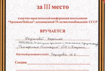 Научно-практическая конференция школьников "Хроники Победы", посвященной 75 - летию освобождения СССР 08.05.2019
