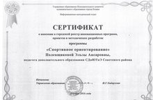 Сертификат о внесении в городской реестр инновационных программ, проектов и методических разработок 23.01.2017