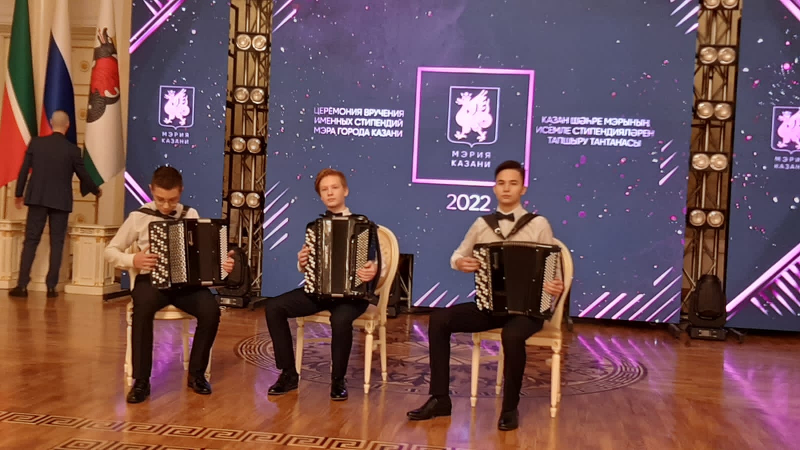 23 декабря в Ратуше состоялось церемония вручения именных стипендий Мэра Казани по итогам 2022года. Учащиеся нашей школы - Хасанов Амир (преп. Марина Т. А.), Шакиров Алексей (Усов А.А.) стали обладателями высокого звания «стипендиатов», а так же в составе трио наши ребята - Хасанов Амир, Шишканов Иван - выступили на праздничной церемони. Поздравляем учащихся, преподавателей и концертмейстера Хамидова Р. Р. и желаем дальнейшего исполнительского роста!