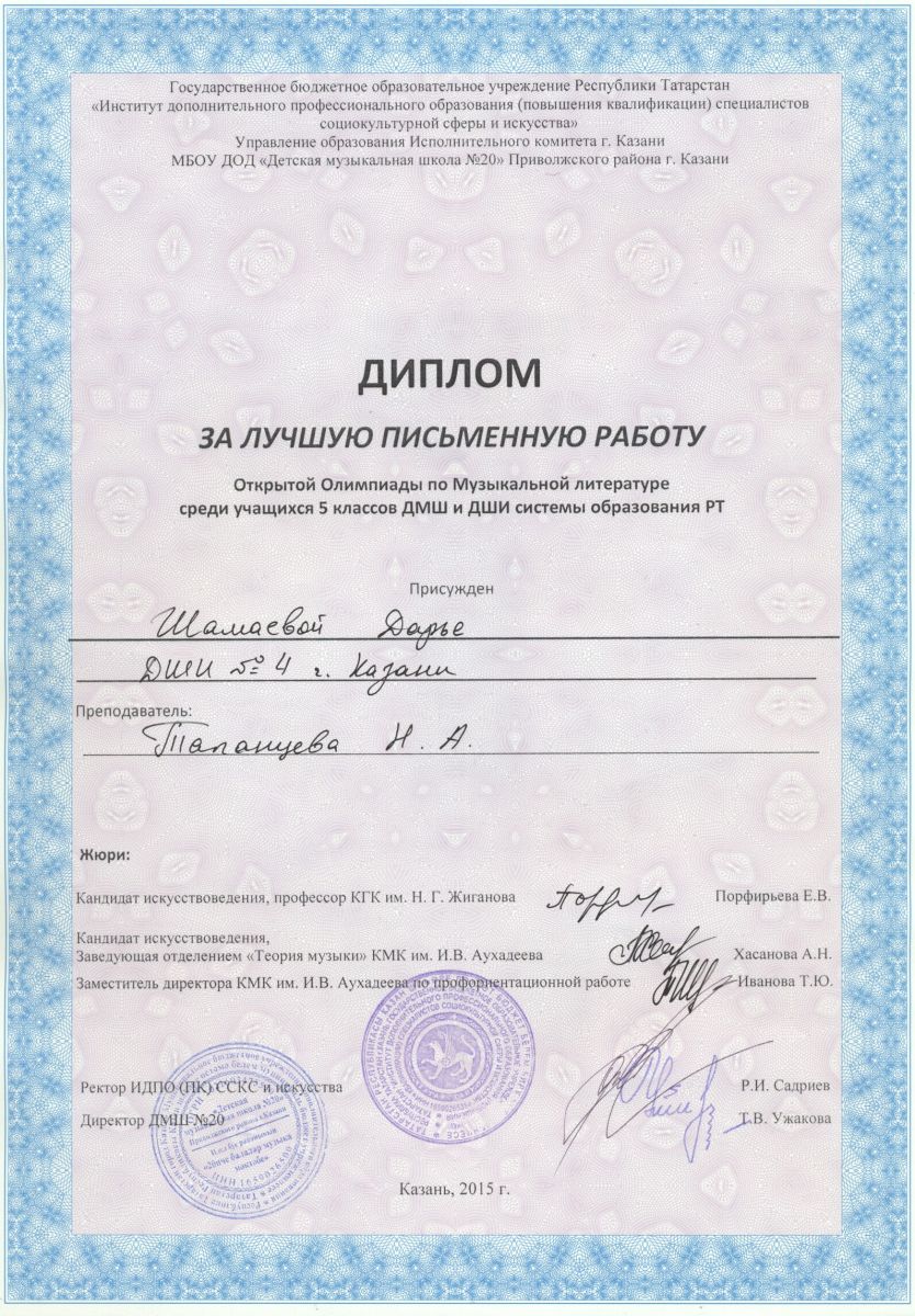Муниципальное бюджетное учреждение дополнительного образования «Детская школа искусств №4» Советского района г. Казани