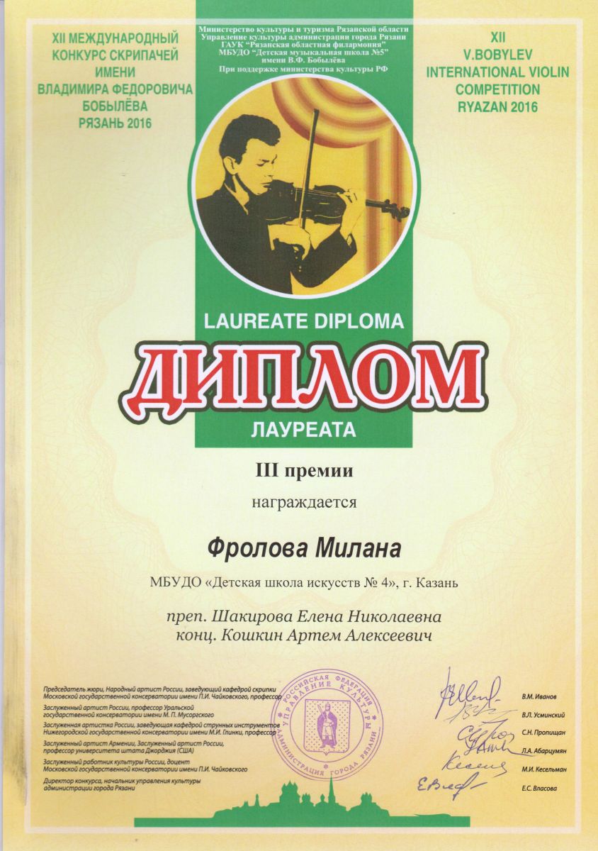 XII Международный Конкурс скрипачей им.В.Ф.Бобылева в г.Рязань
