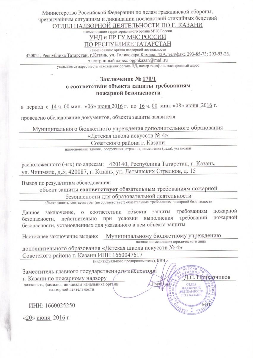 Заключение о соответствии объекта защиты требованиям пожарной безопасности