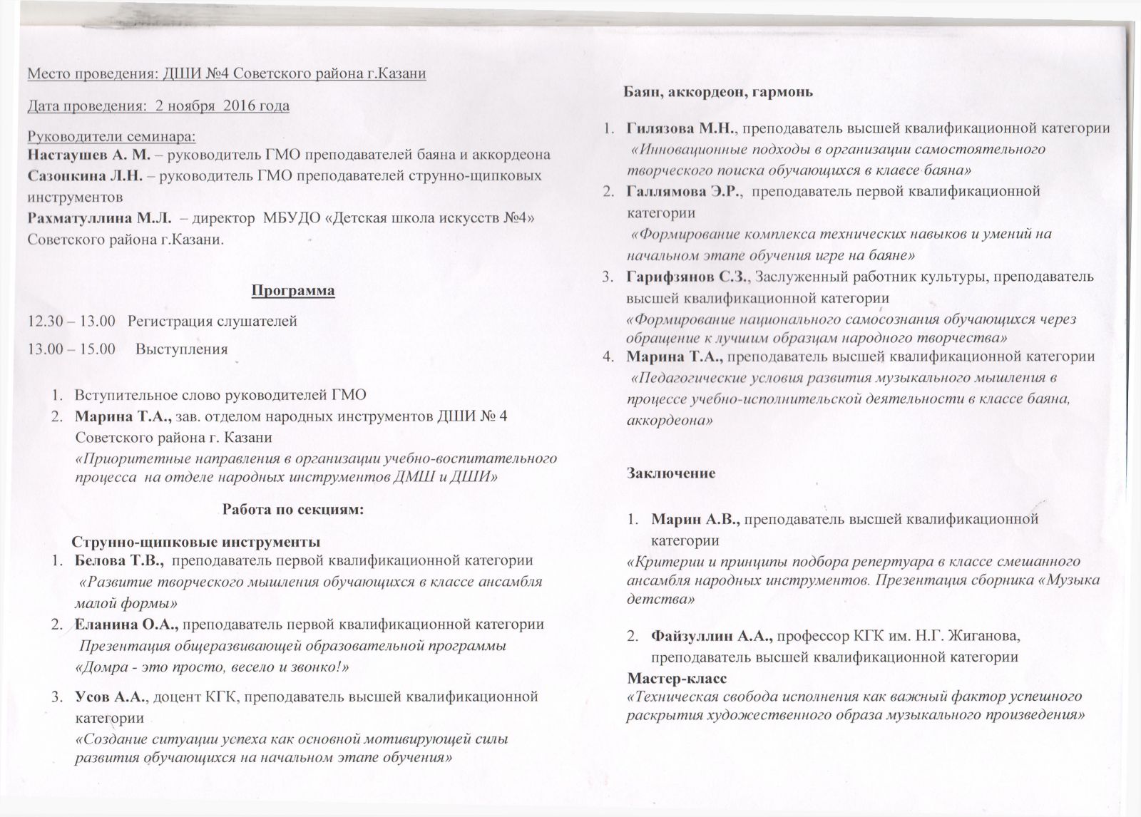 Городской семинар ГМО преподавателей народных инструментов на тему: «Современные требования к повышению эффективности и качества музыкально-эстетического образования в условиях деятельности ДМШ и ДШИ»