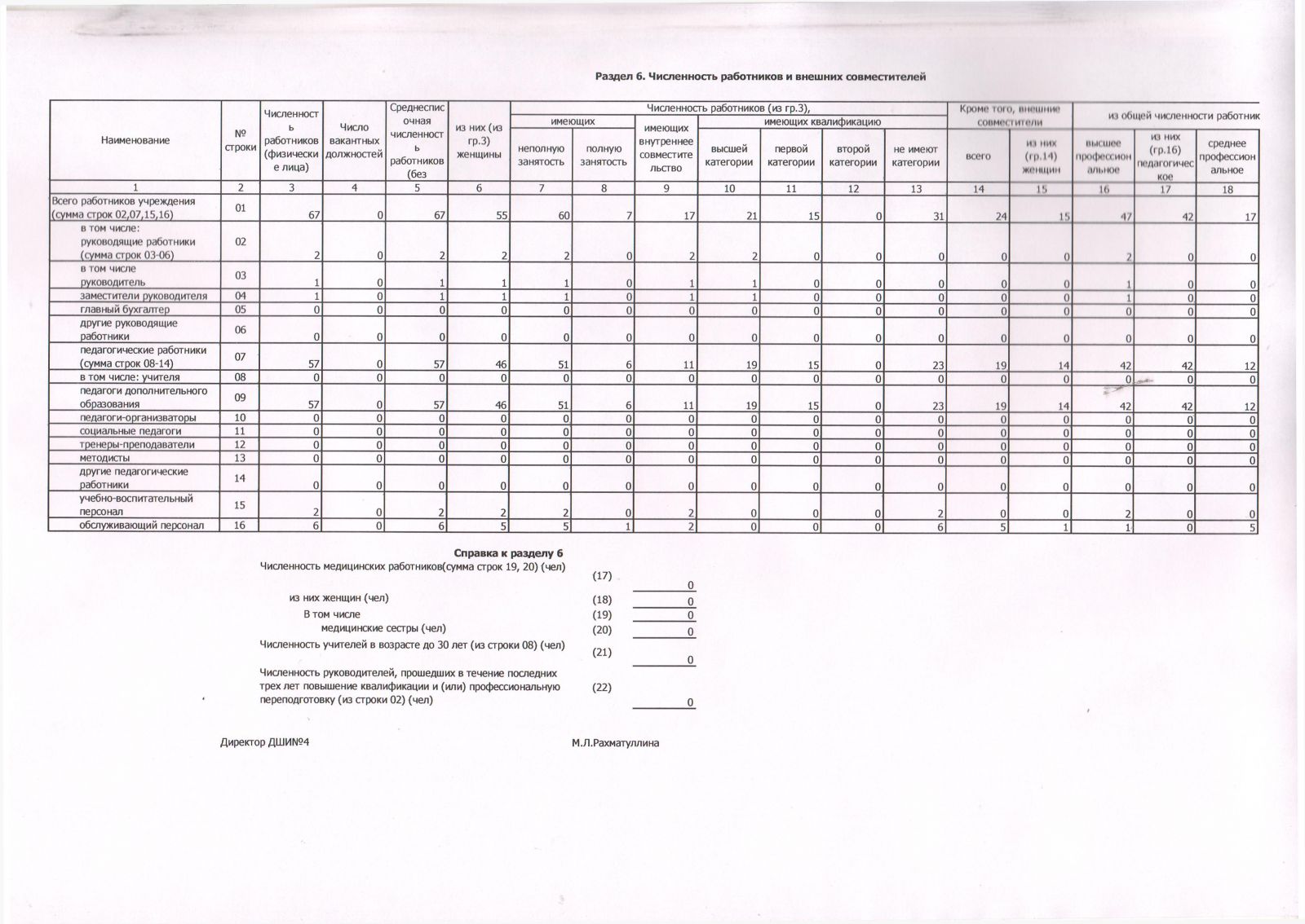 - Количество педагогов, имеющие высшую и первую квалификационные категории (основные/совместители)