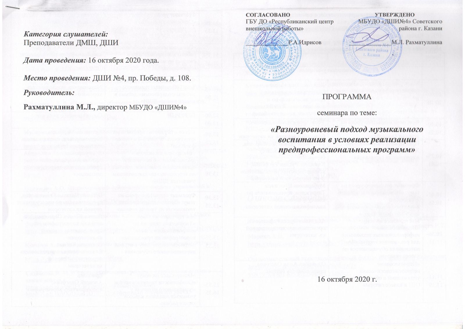 - 2.Организация и проведение ДШИ№4 Республиканского семинара по теме: "Разноуровневый подход музыкального воспитания в условиях реализации предпрофессиональных программ"