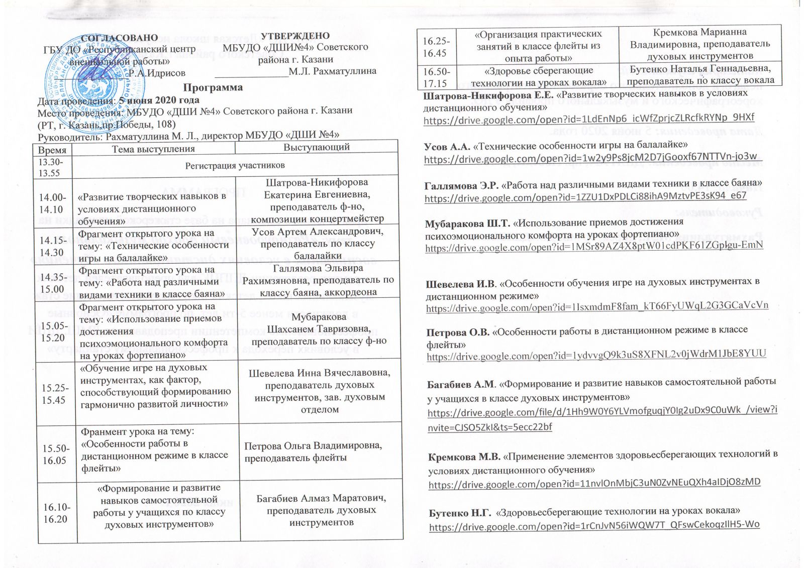 - 1. .Организация и проведение ДШИ№4 Республиканского семинара по теме: "Разноуровневый подход музыкального воспитания в условиях дистанционного обучения" (5 июня 2020 года)
