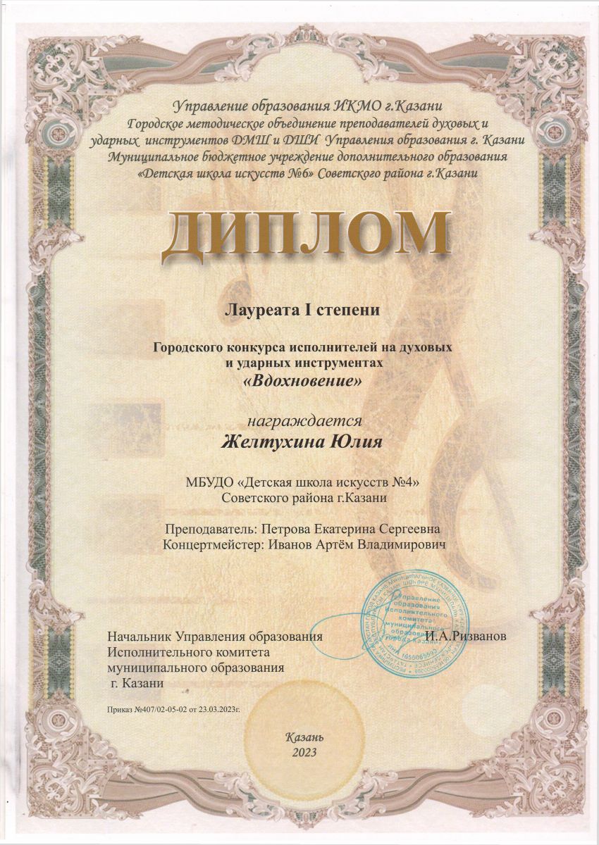 Муниципальное бюджетное учреждение дополнительного образования «Детская школа искусств №4» Советского района г. Казани