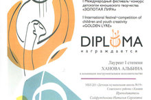 Учащиеся нашей школы Ханова Альбина под руководством педагога Сайфутдиновой Н.С., Косточко Вера под руководством педагога Хановой Т.В. приняли участие в Международном конкурсе детского юношеского творчества "Золотая лира". По итогам конкурса получили диплом лауреата I степени (Ханова А.), диплом 3 степени (Косточко В.). Поздравляем с победой!