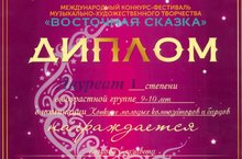 Учащиеся нашей школы Егорова Елизавета под руководством педагога Салиховой А.Х., Хайруллин Артур под руководством Григорьевой М.Н. приняли участие в Международном конкурс-фестивале музыкально-художественного творчества "Восточная сказка". По итогам конкурса получили диплом лауреата 1 степени в номинации "Конкурс молодых композиторов и бардов" и "Эстрадный вокал". Поздравляем с победой!