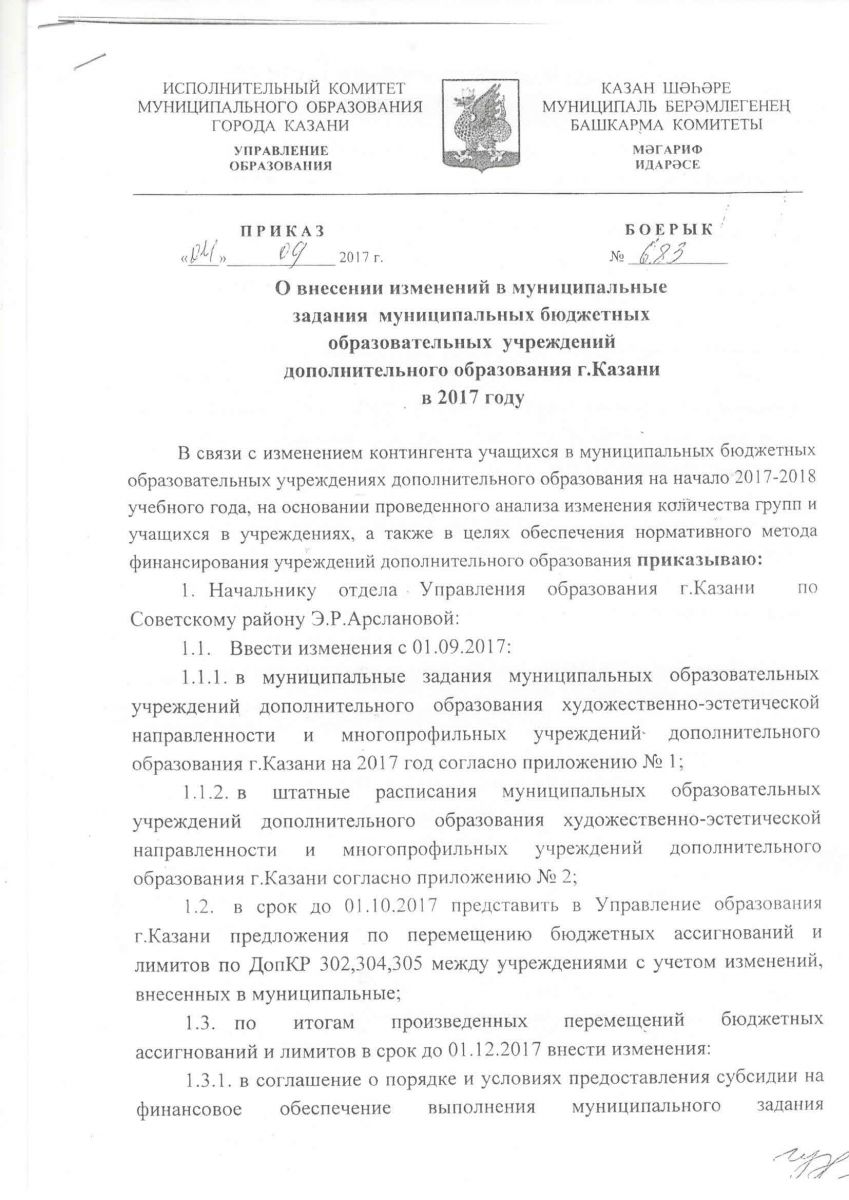 приказ об изменении муниципального задания страница 1,2, 3, 4