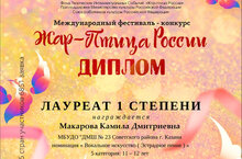 Поздравляем обучающихся нашей школы с успешным выступлением в Международном конкурсе-баттле среди лучших исполнителей 15 стран "Жар-Птица России"!
