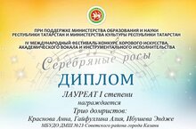 Дипломант I степени - Мифтахова Замира, преподаватель: Нагимова А.М., концертмейстер: Размахова В.Л.