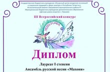 Лауреат I степени - Ансамбль русской песни "Махоня", ансамбль струнных народных инструментов "Балагуры", преподаватели: Аксакова-Хусаенова А.В., Васильева Е.В., Руднева А.В., концертмейстер: Бадрутдинов Р.М.