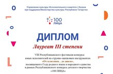 Лауреат III степени - Минзафарова Джамиля, преподаватель: Хазиева Р.Г.