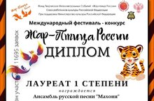 Лауреат I степени - Ансамбль русской песни "Махоня", руководитель: Руднева А.В., концертмейстер: Бадрутдинов Р.М.