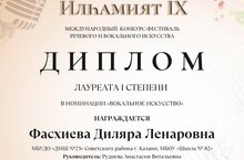 Фасхиева Диляра (преподаватель: Руднева Анастасия Витальевна) - Лауреат I степени