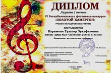 Дипломант I степени - Купцова Диана, преподаватель: Туктарова Г.Р.