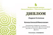 Поздравляем директора Каткова Алексея Николаевича и коллектив детской музыкальной школы №23 - Лауреата II степени Всероссийского конкурса «Звёзды будущего» («Киләчәк йолдызлары») в номинации "Учреждение"!