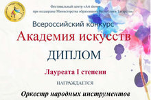 Лауреат I степени - оркестр народных инструментов, руководитель: Бадрутдинов Р.М.