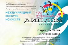 Дипломант I степени - Купцова Диана, преподаватель: Туктарова Г.Р.