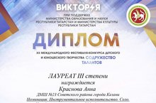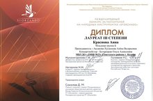 Поздравляем Краснову Анну (преподаватель: Аксакова-Хусаенова А.В., концертмейстер: Бутовецкая О.А.) - Лауреата III степени Международного конкурса исполнителей на народных инструментах "SFORZANDO" !