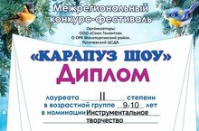 Поздравляем Голяндина Эдуарда (преподаватель: Хайрутдинова Айгуль Азатовна) - Лауреата II степени Межрегионального конкурса-фестиваля "Карапуз шоу"! Желаем дальнейших творческих успехов и новых побед!