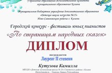 Лауреат II степени - Бикулова Д., преподаватель: Бадрутдинова Э.М., концертмейстер: Катков А.Н.