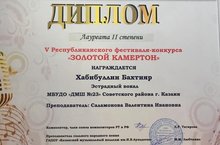 Лауреат I степени – Хайруллина Р., преподаватель: Аксакова-Хусаенова А.В., концертмейстер: Камалова Э.Р.