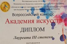 Лауреат III степени - Хазиахметова Аделя, преподаватель Абдрашитова А.Р.