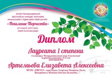 Артемьева Елизавета (преподаватель: Никитина Светлана Германовна) - Лауреат I степени