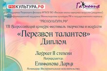 Епифанова Дарья (преподаватель: Сиразетдинова Татьяна Иосифовна) - Лауреат II степени