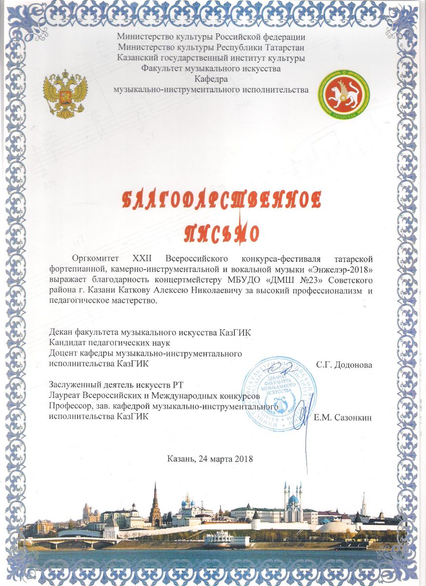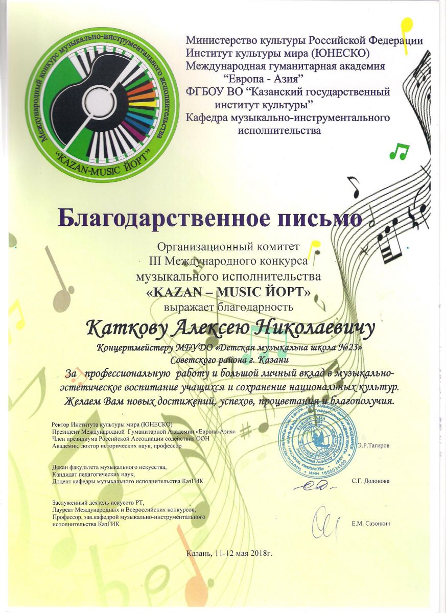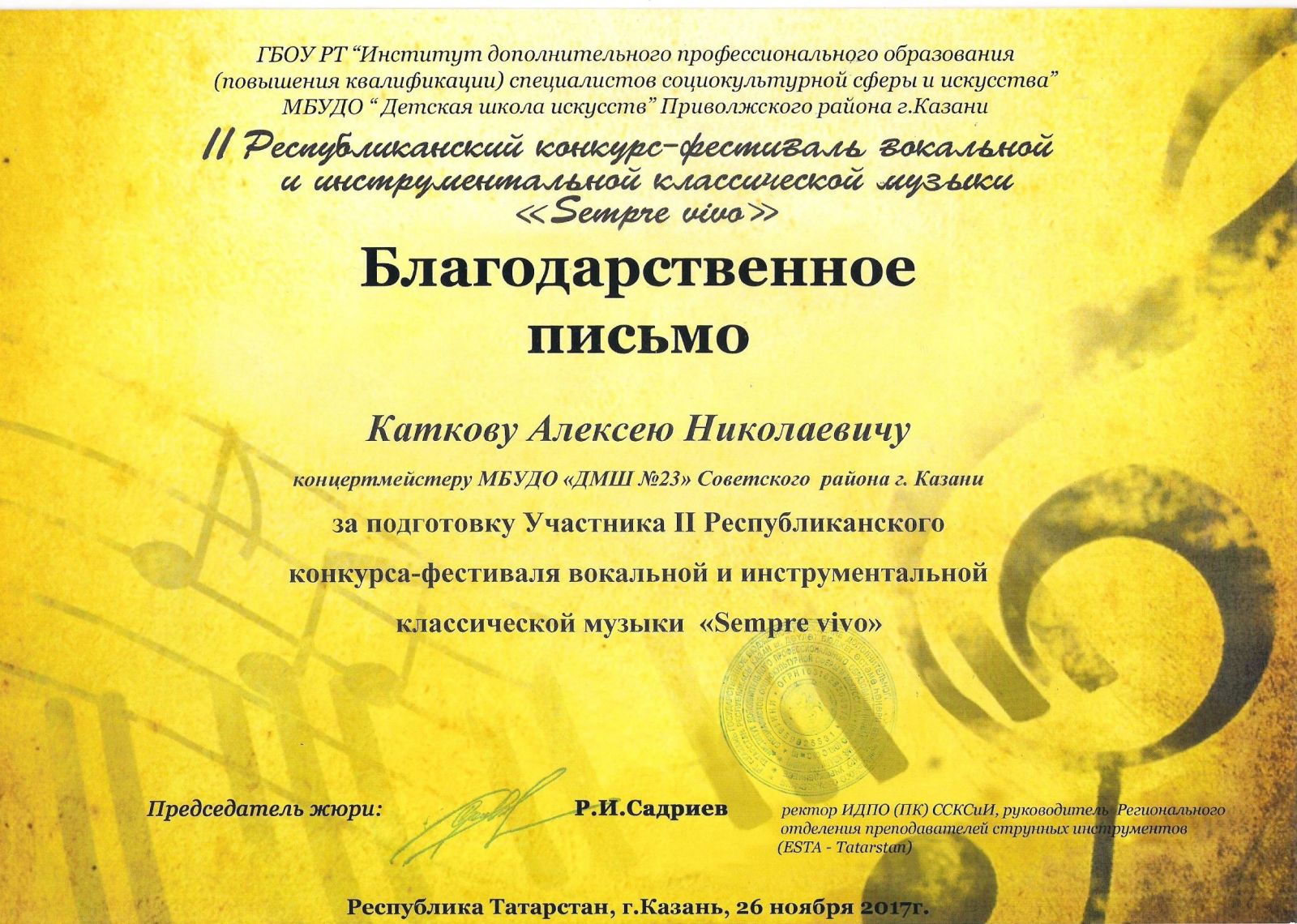 I Всероссийский конкурс "Призвание" - Благодарственное письмо - Катков А.Н.