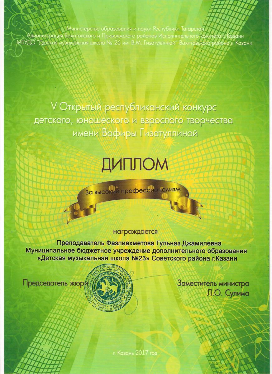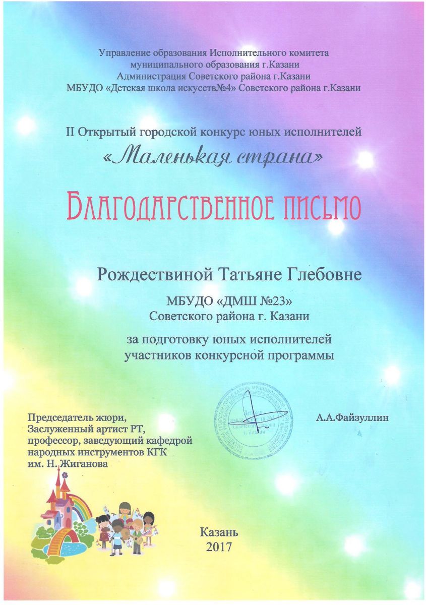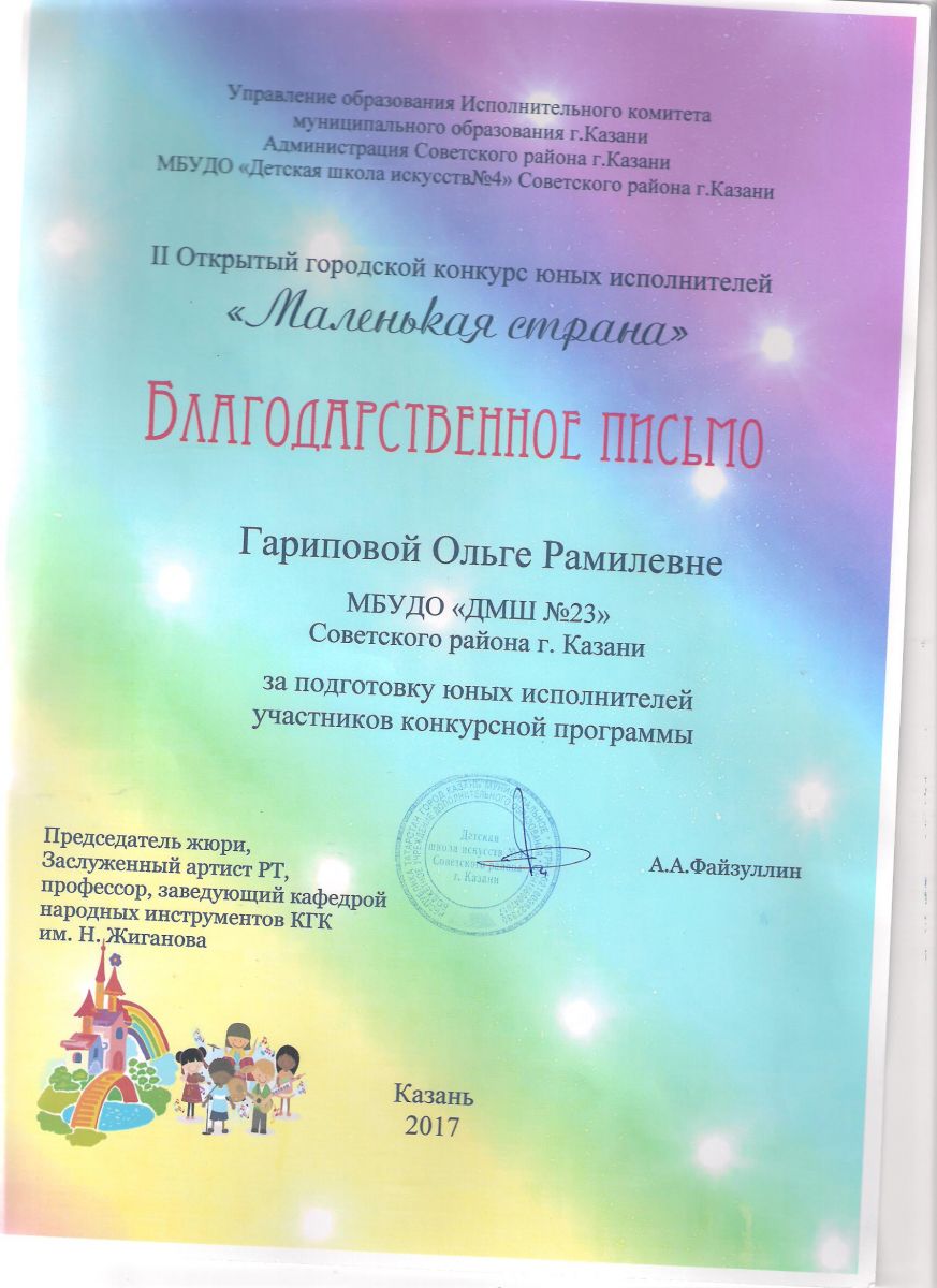 Республиканский конкурс юных композиторов Татарстана - Благодарность - Дутова Е.П.
