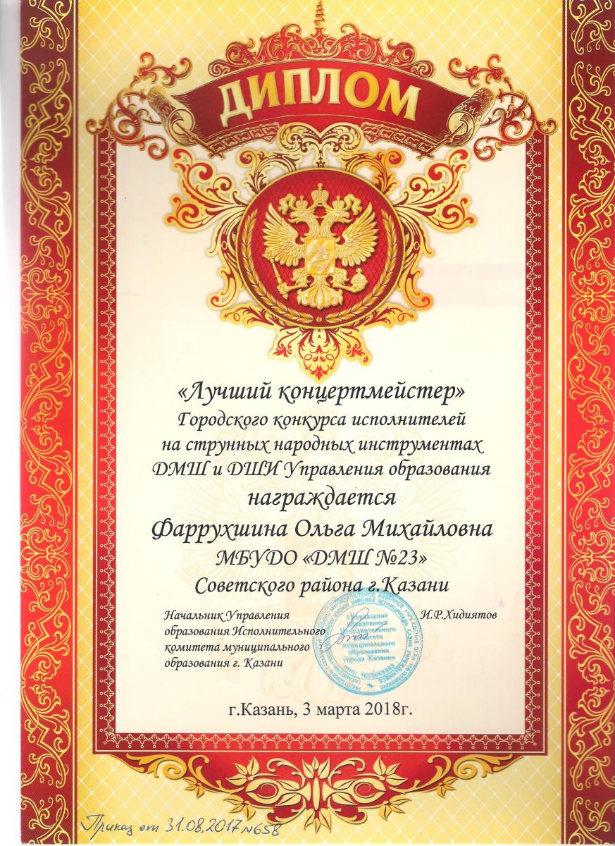 II Открытый городской конкурс юных исполнителей "Маленькая страна" - Диплом - Фаррухшина О.М.