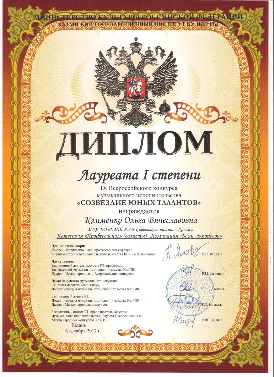 Открытый городской конкурс вокального и инструментального исполнительства "Алишевский камертон" - Грамота - Клименко О.В.