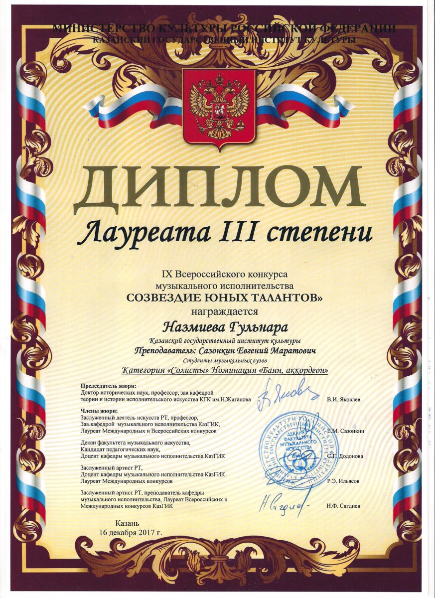 I Международный конкурс театра, музыки и танца "ART-MIX" - Диплом лауреата 2 степени - Назмиева Г.Ф.