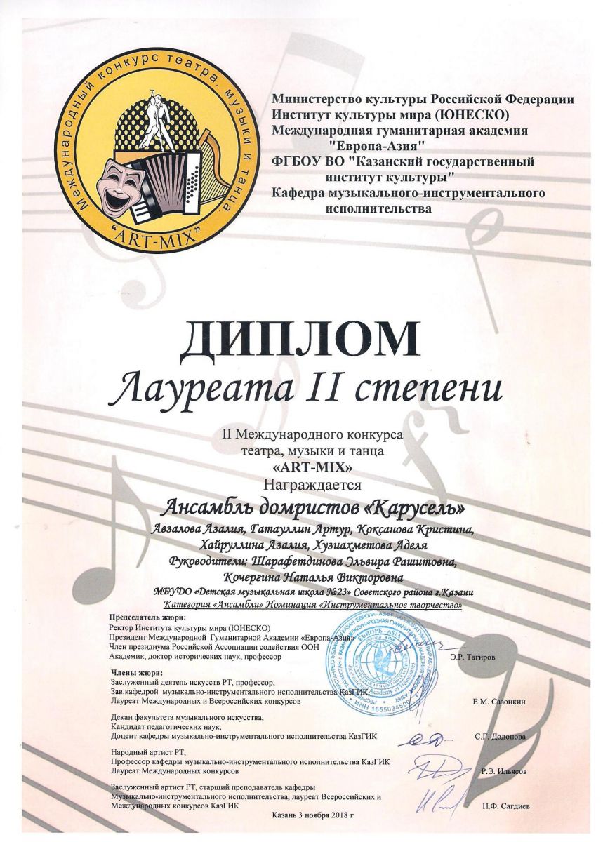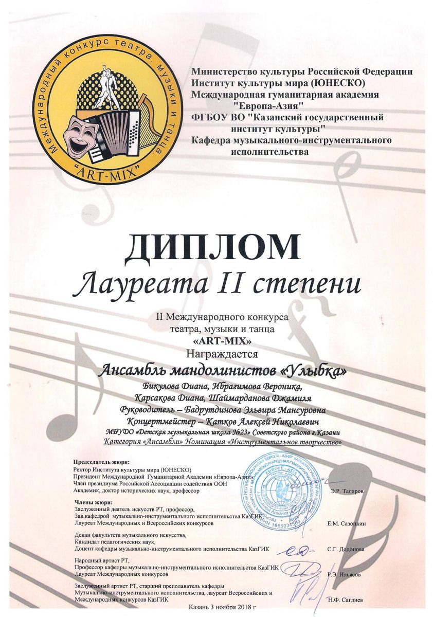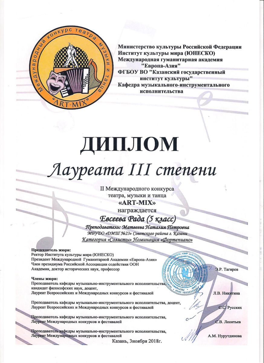 II Международный конкурс театра, музыки и танца "ART-MIX" - Диплом лауреата 3 степени - Евсеева Рада
