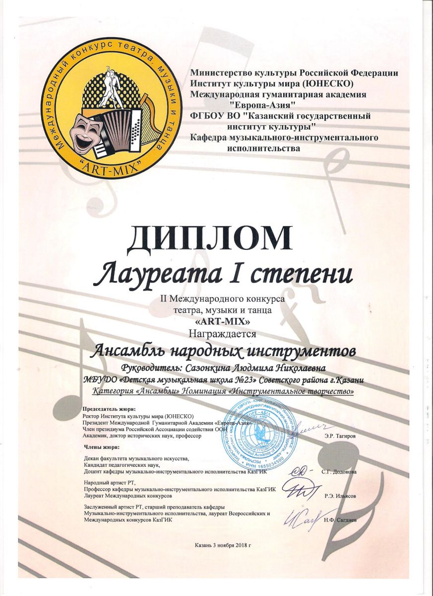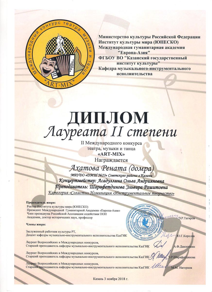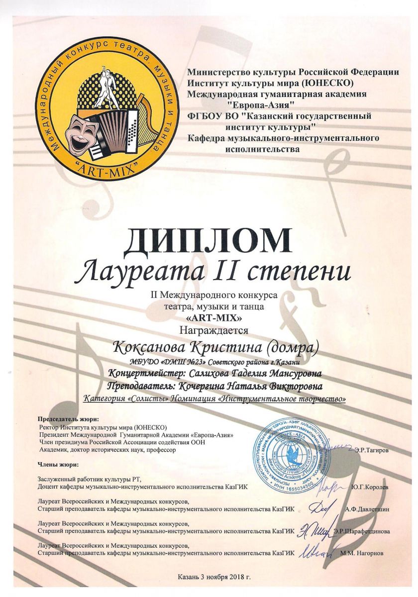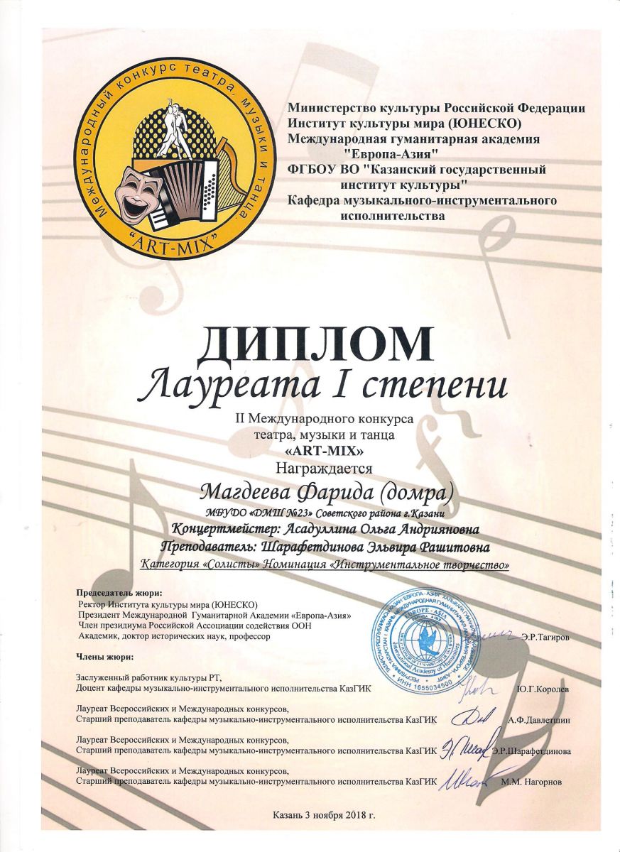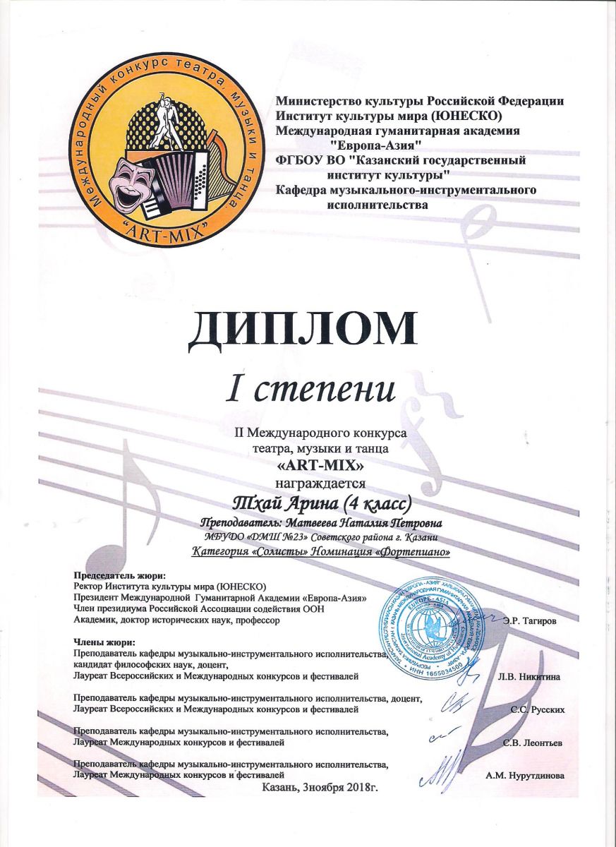 II Международный конкурс театра, музыки и танца "ART-MIX" - Диплом дипломанта 1 степени - Тхай Арина