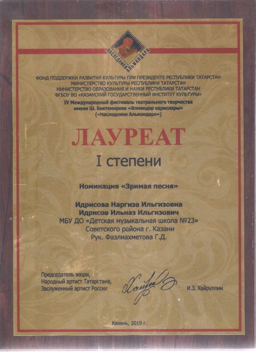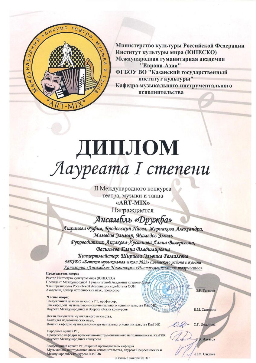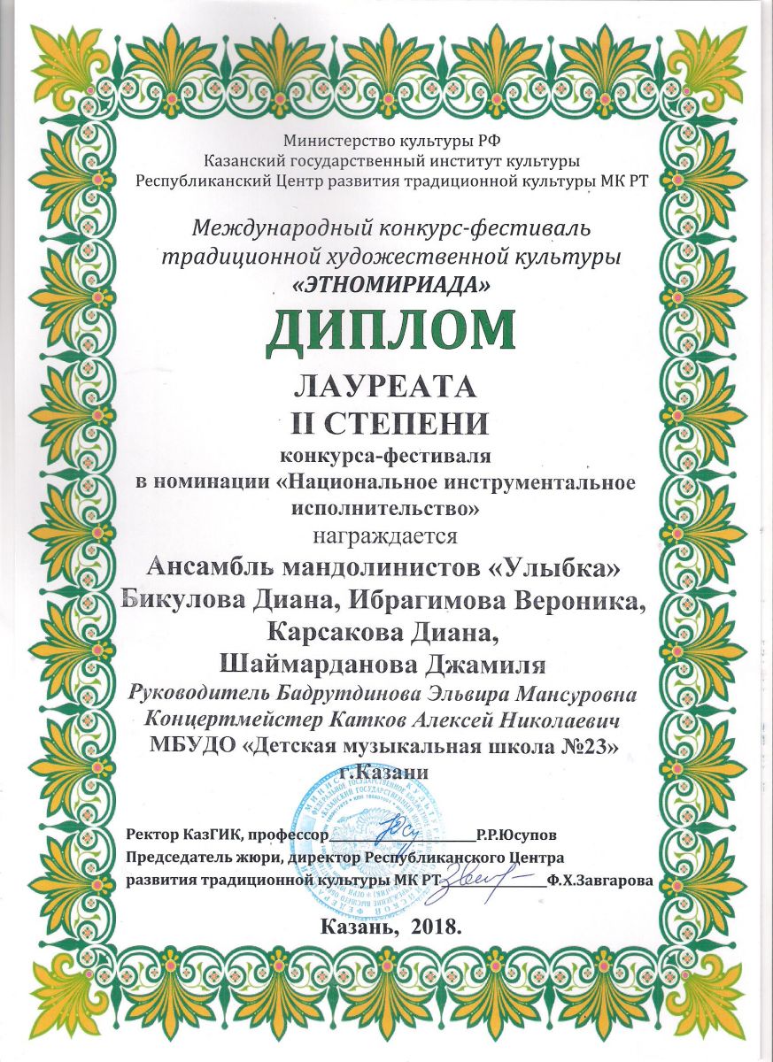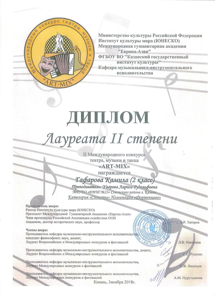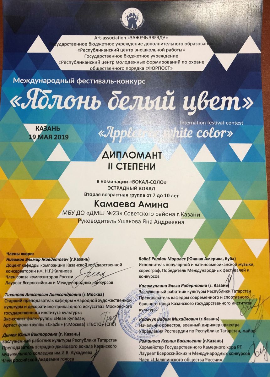Международный фестиваль-конкурс "Яблонь белый цвет" - Диплом дипломанта II степени - Камаева Амина