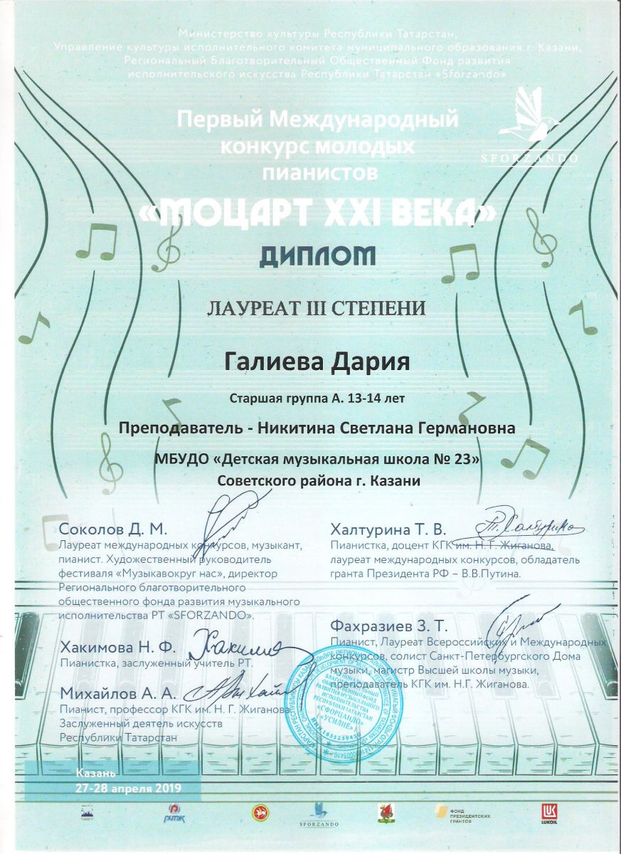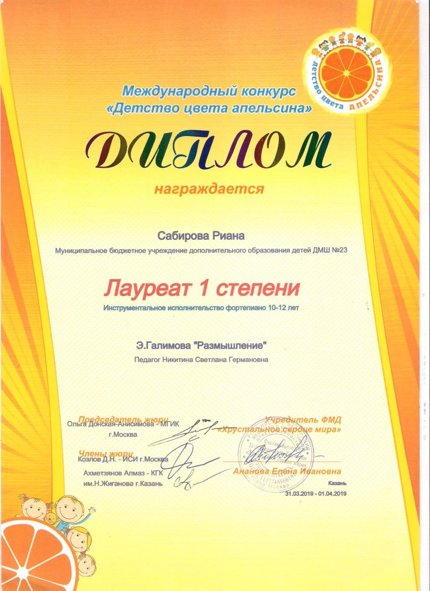 Международный конкурс "Детство цвета апельсина" - Диплом лауреата I степени - Сабирова Риана