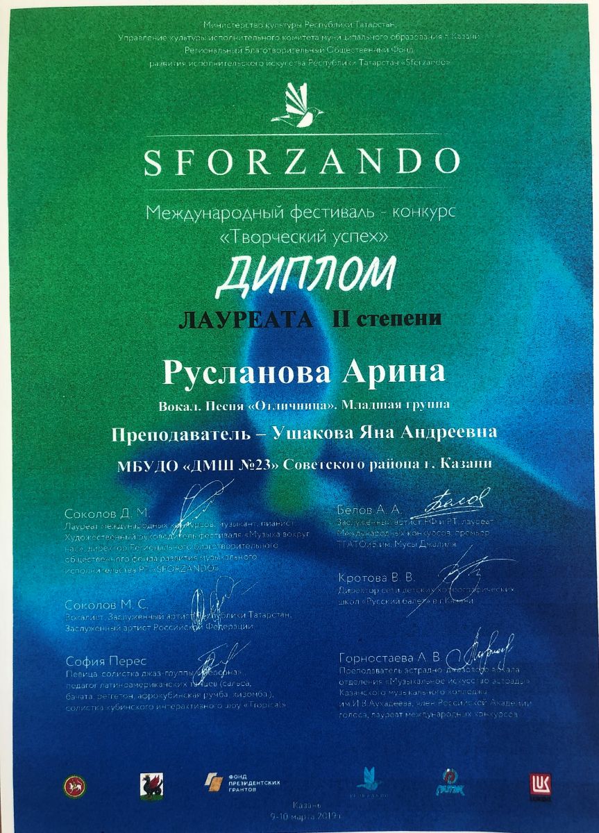Международный фестиваль-конкурс "Творческий успех" - Диплом лауреата II степени - Русланова Арина