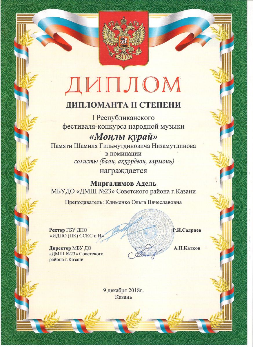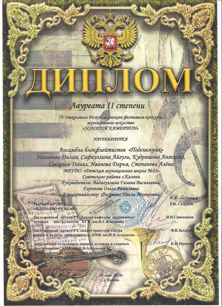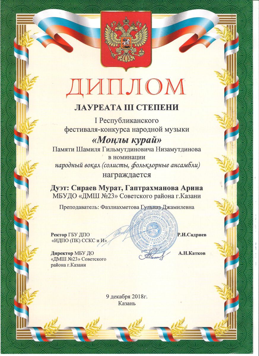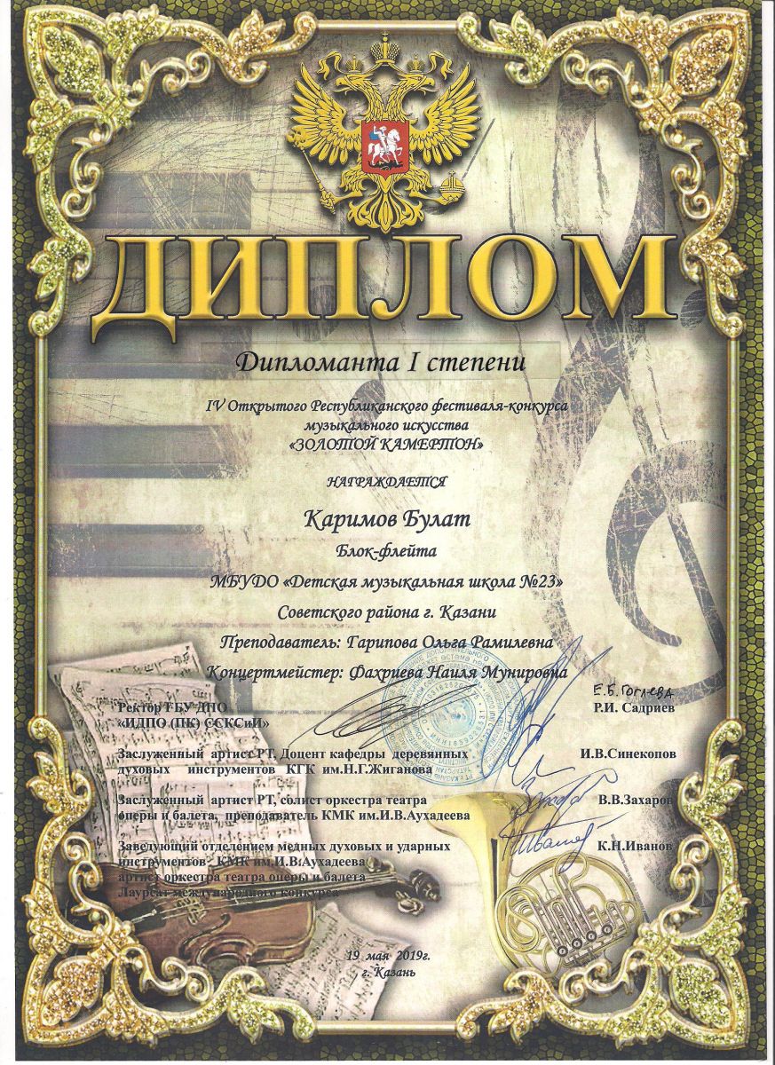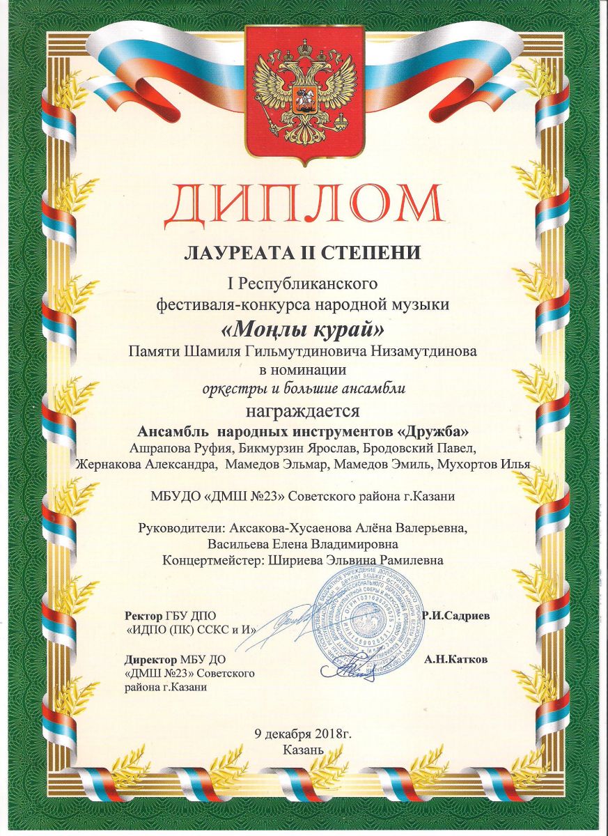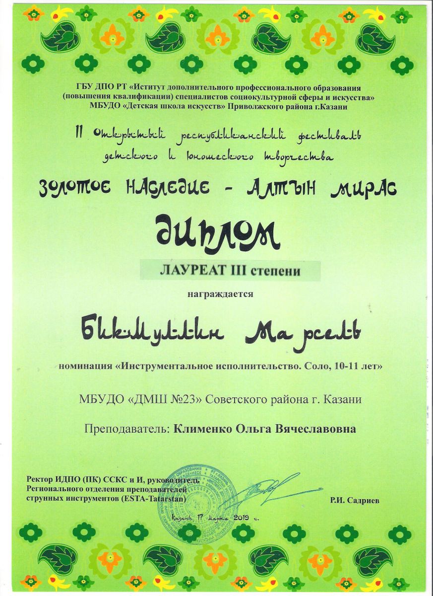 Республиканский конкурс пианистов "Piano d'arte" - Диплом лауреата II степени - Шарифулин Тамерлан