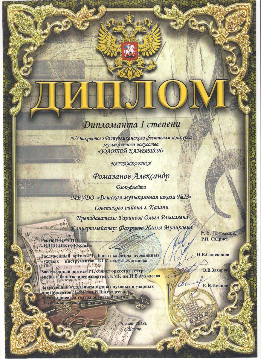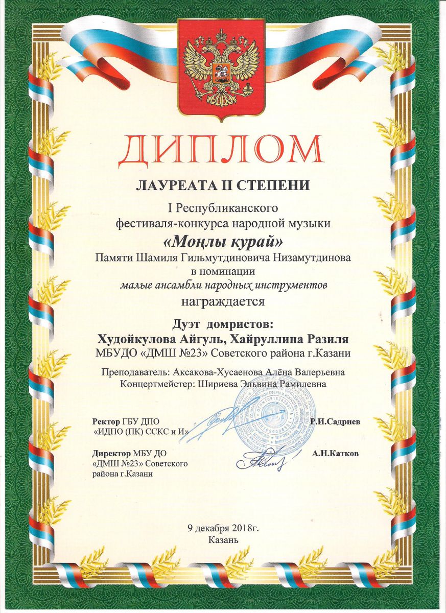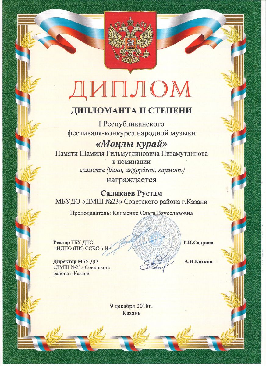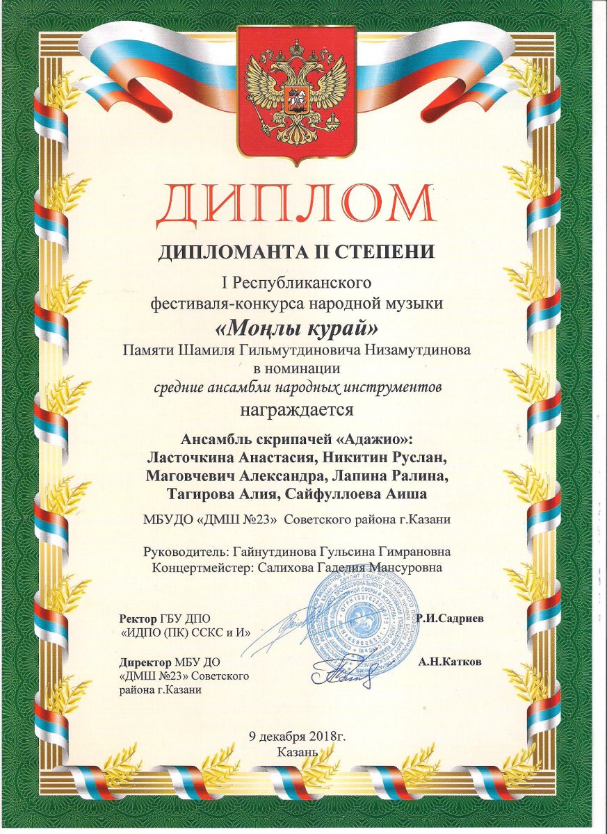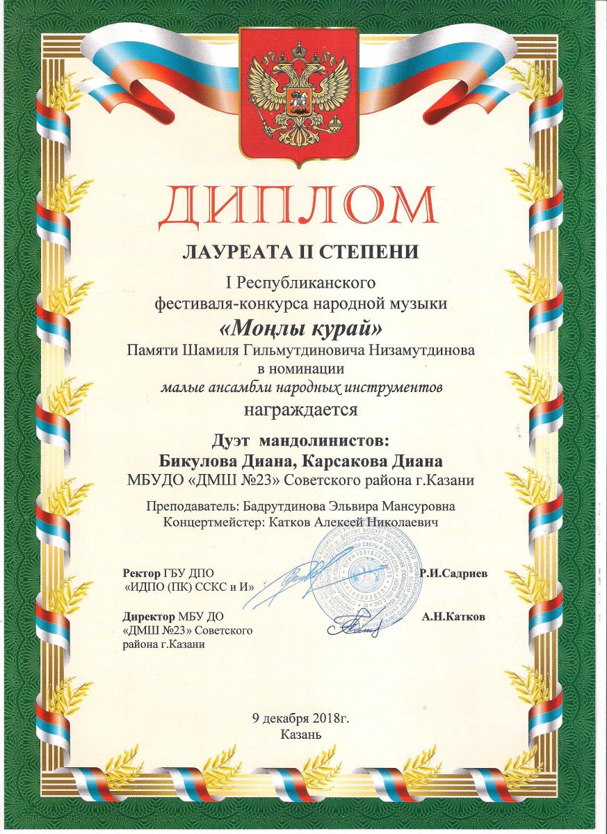 Республиканский конкурс пианистов "Piano d'arte" - Диплом лауреата II степени - Шарифулин Тамерлан