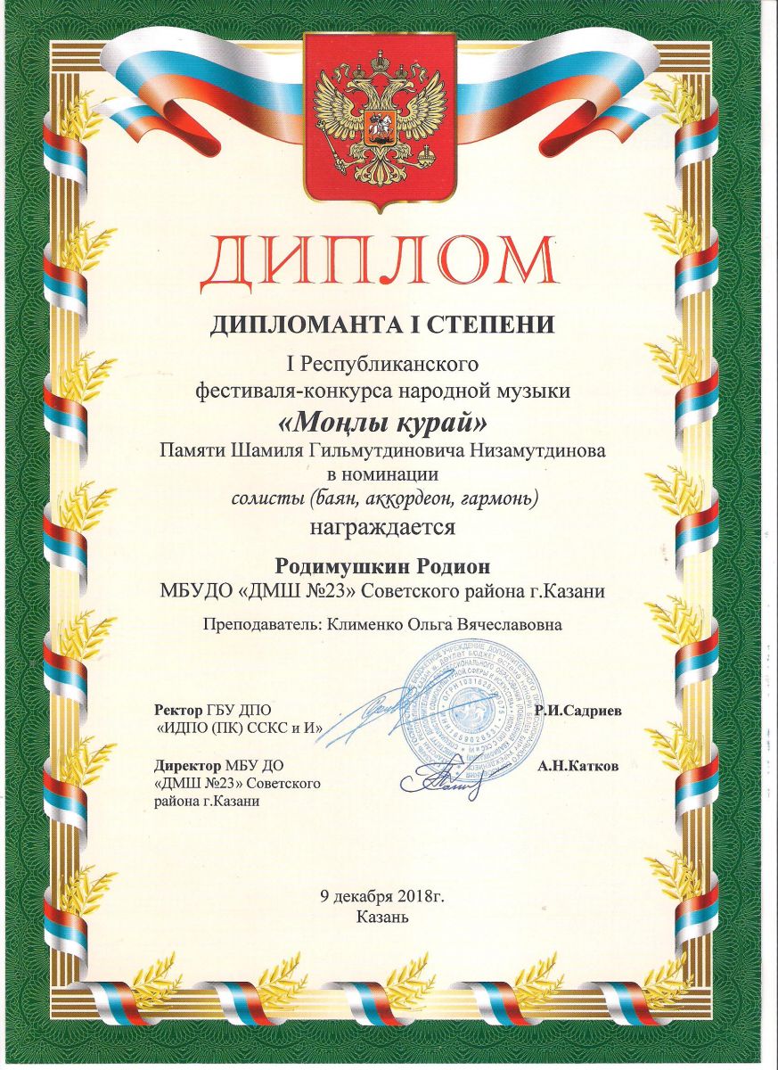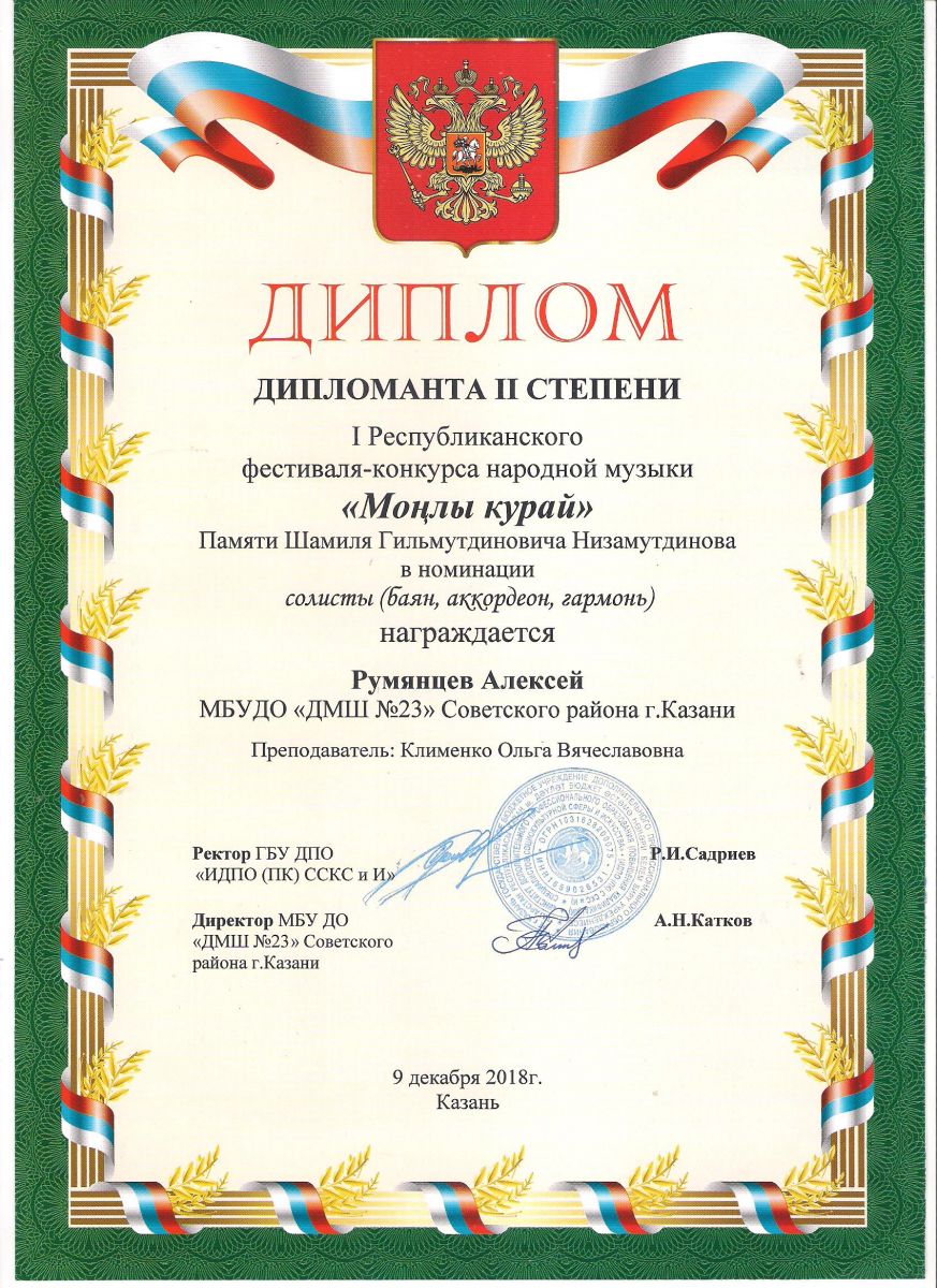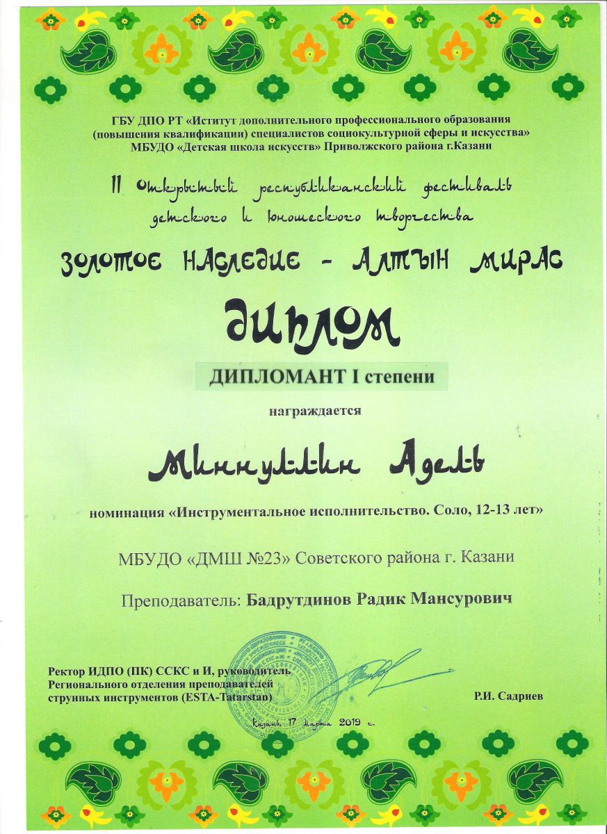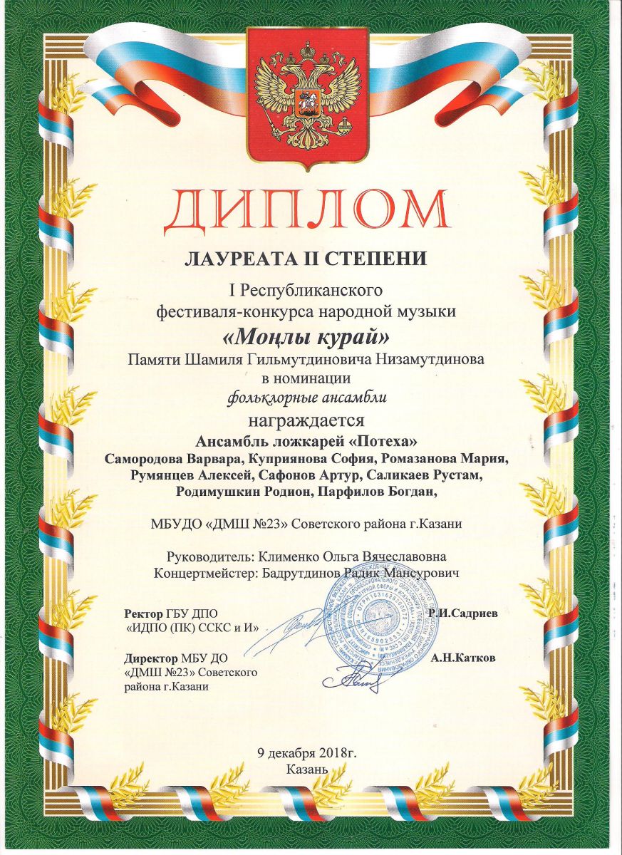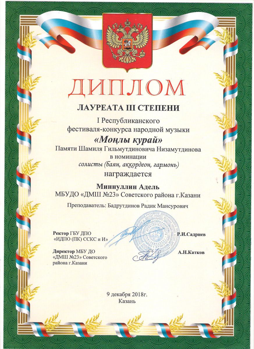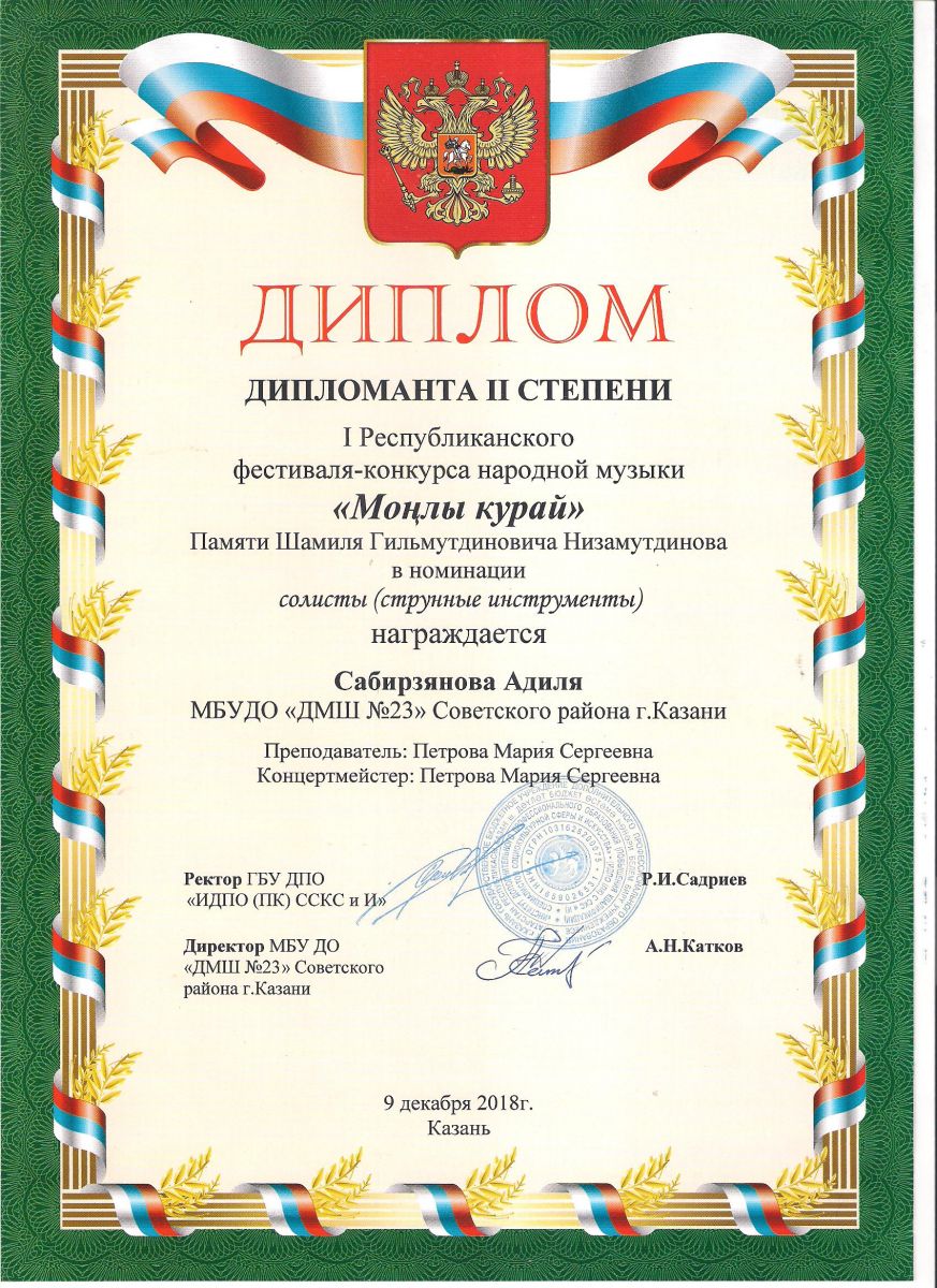Республиканский конкурс пианистов "Piano d'arte" - Диплом лауреата II степени - Шарифулин Тамерлан