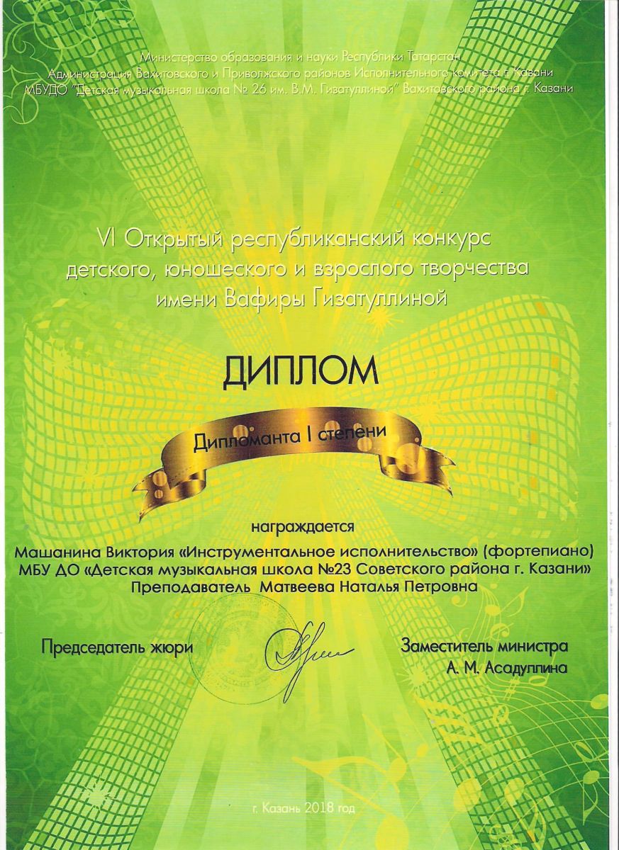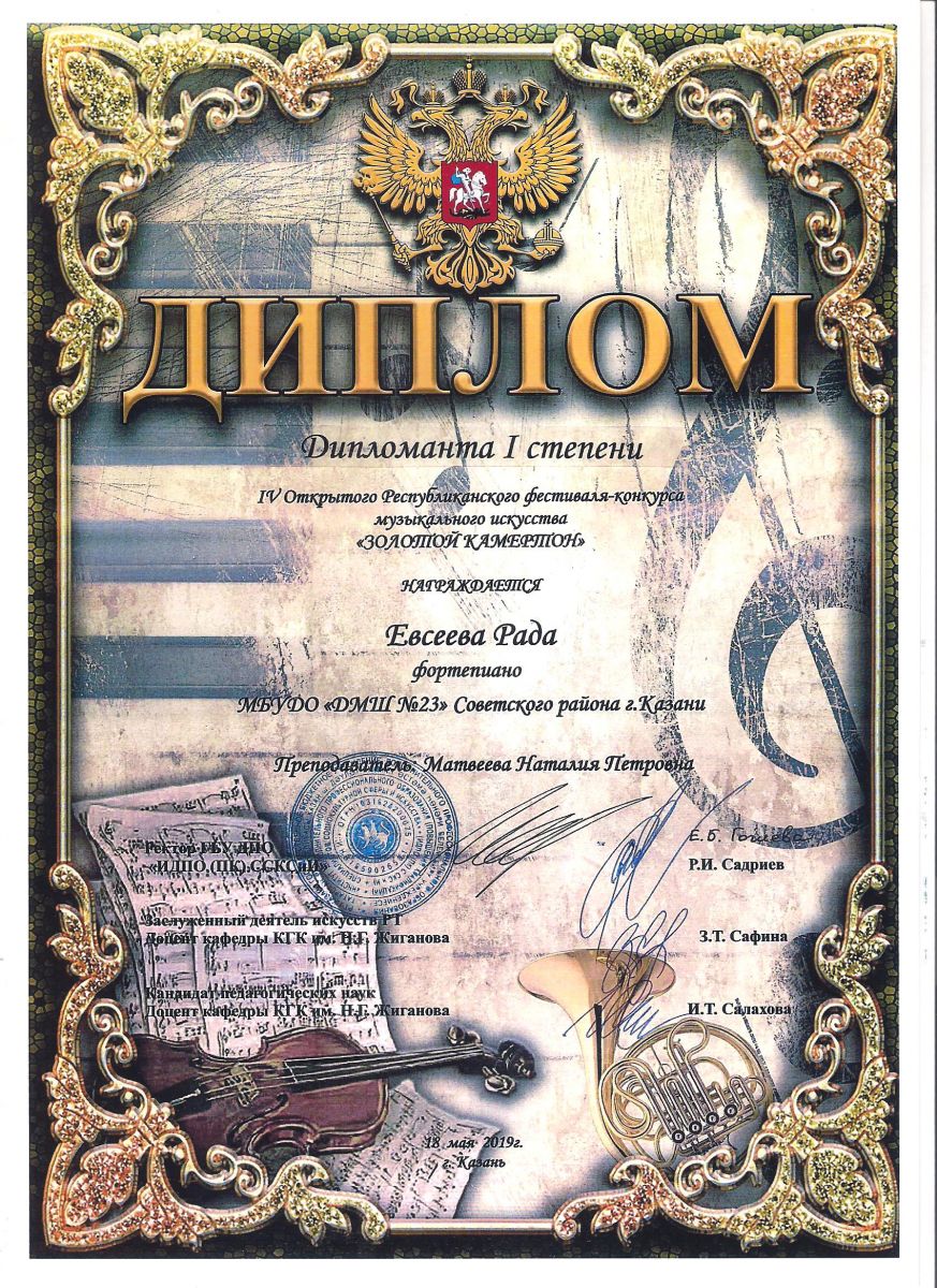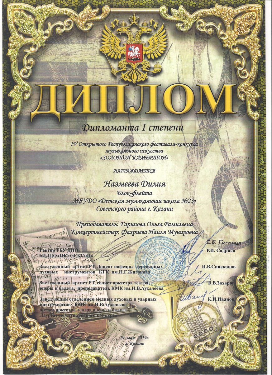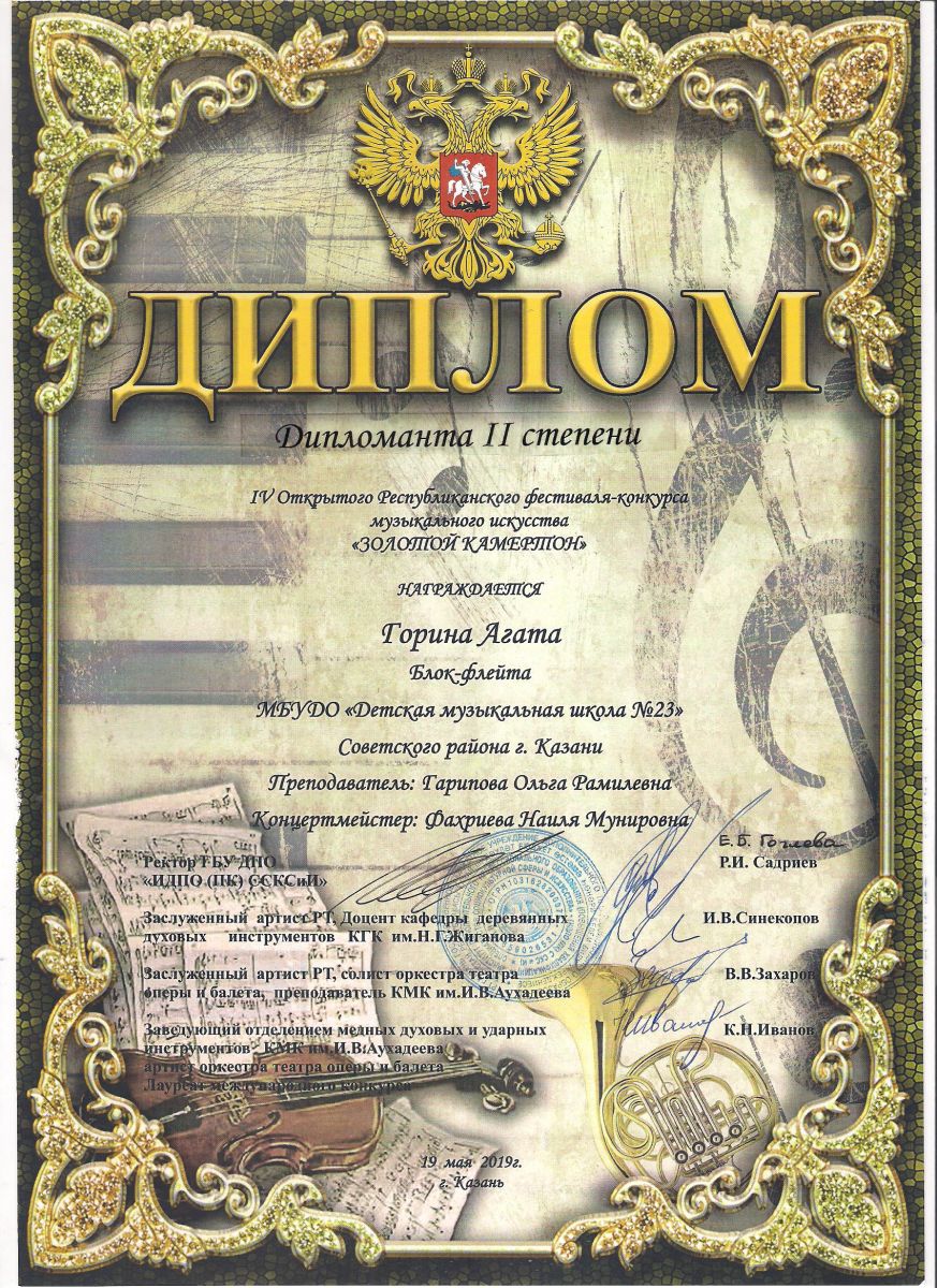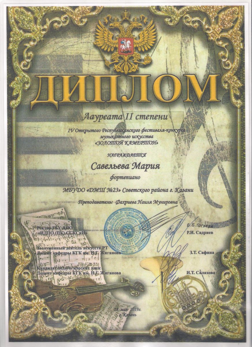 Республиканский конкурс пианистов "Piano d'arte" - Диплом дипломанта I степени - Галиева Дария