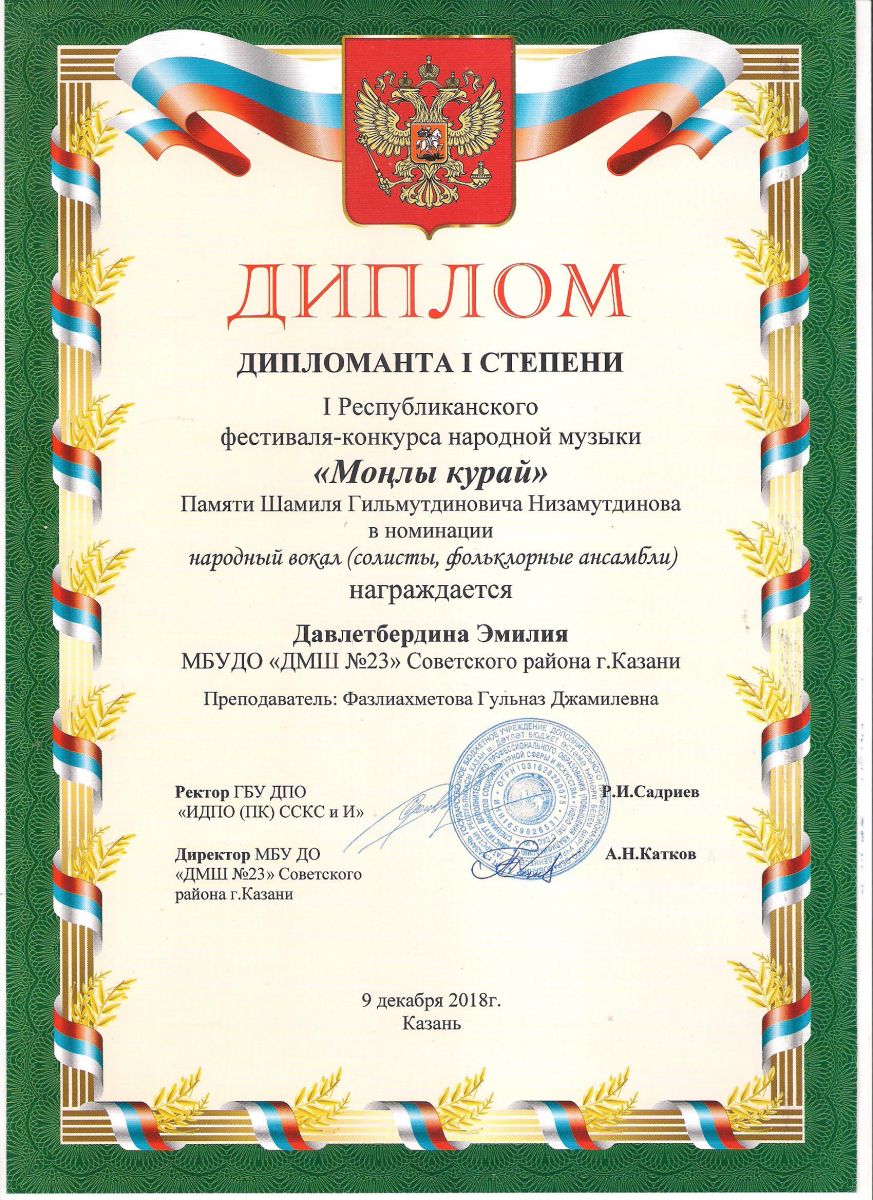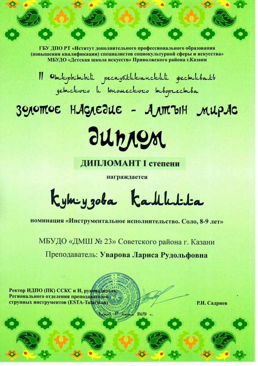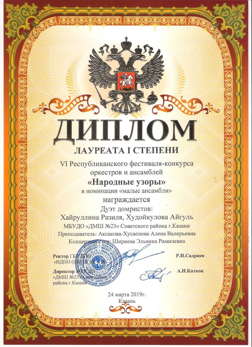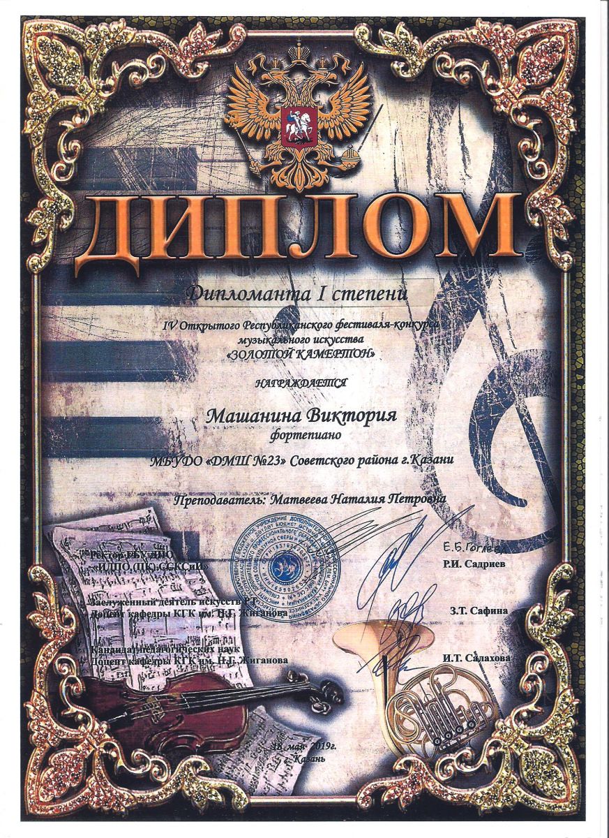 Республиканский конкурс пианистов "Piano d'arte" - Диплом дипломанта I степени - Галиева Дария