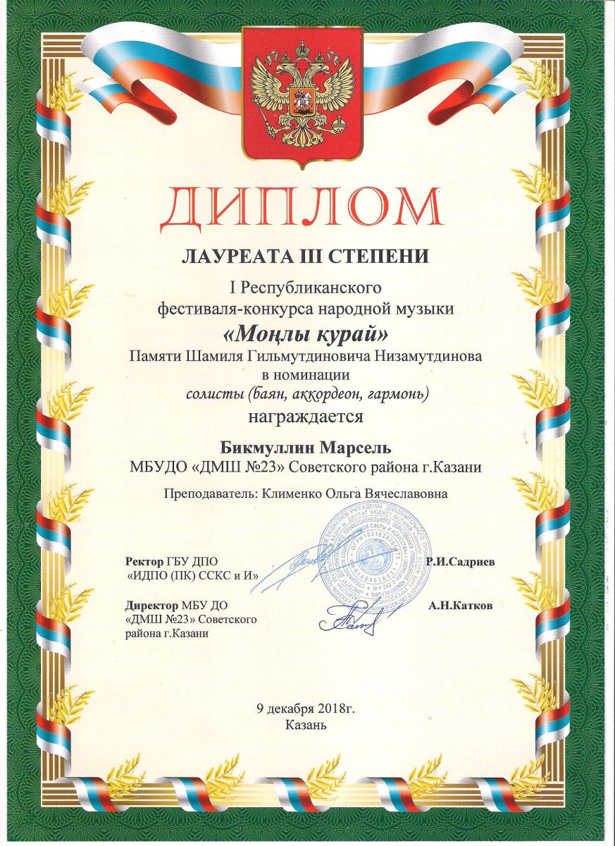 Муниципальное бюджетное учреждение дополнительного образования «Детская музыкальная школа № 23" Советского района г.Казани