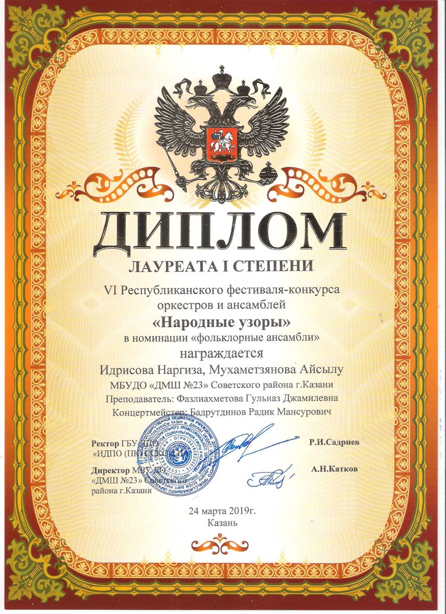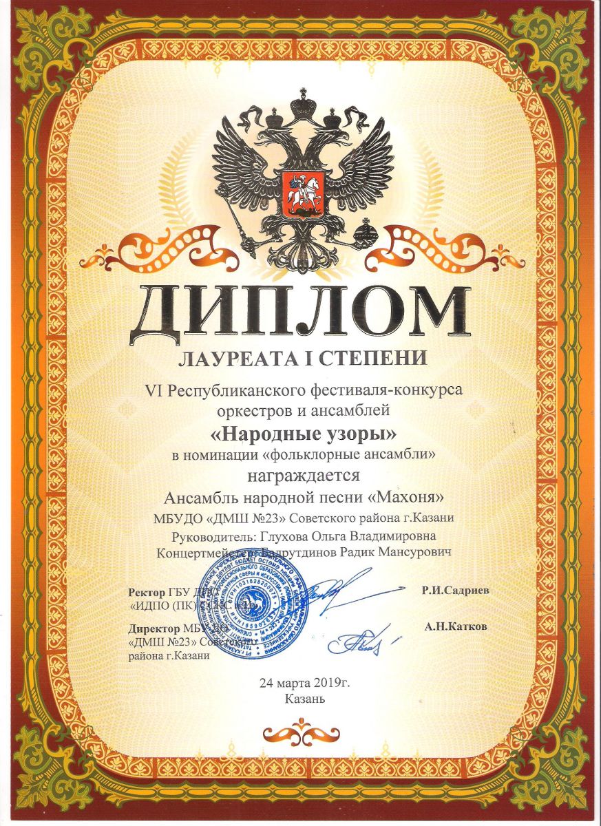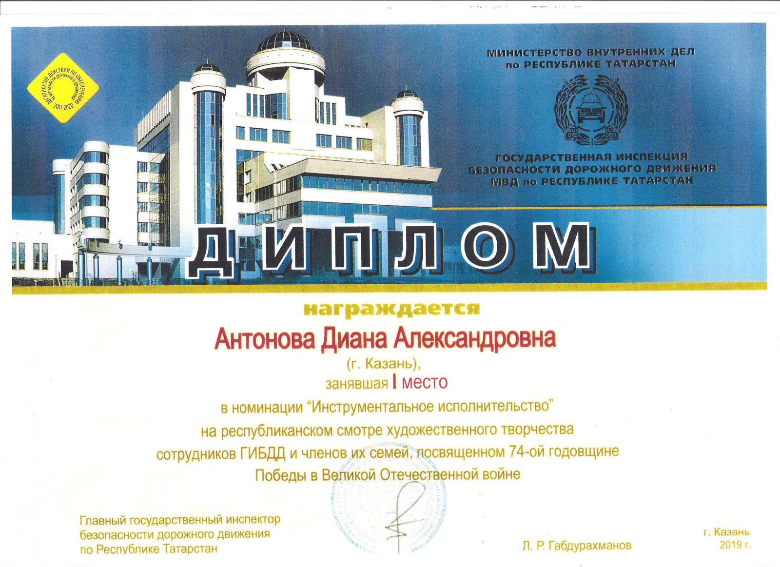 Республиканский смотр художественного творчества - Диплом за 1 место - Антонова Диана