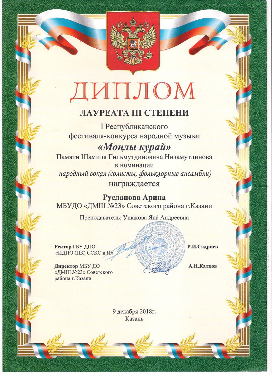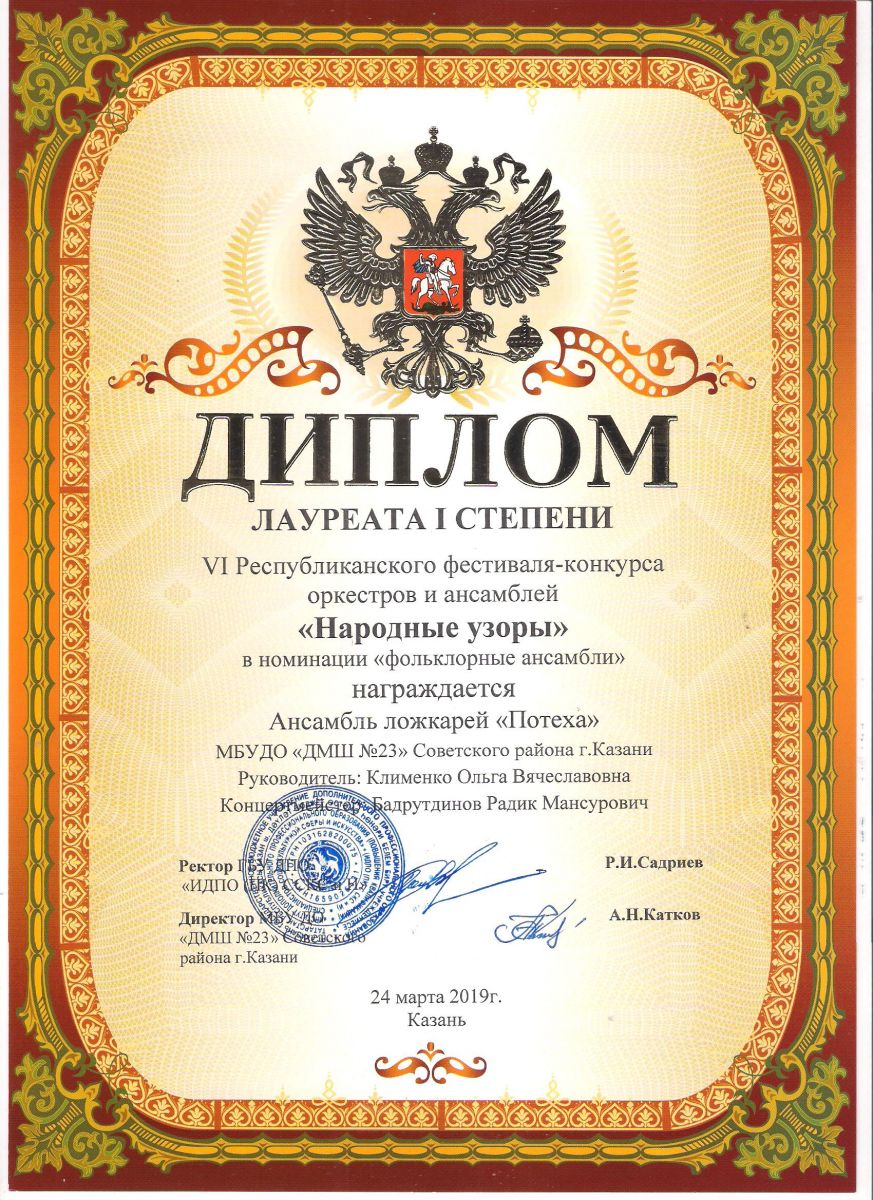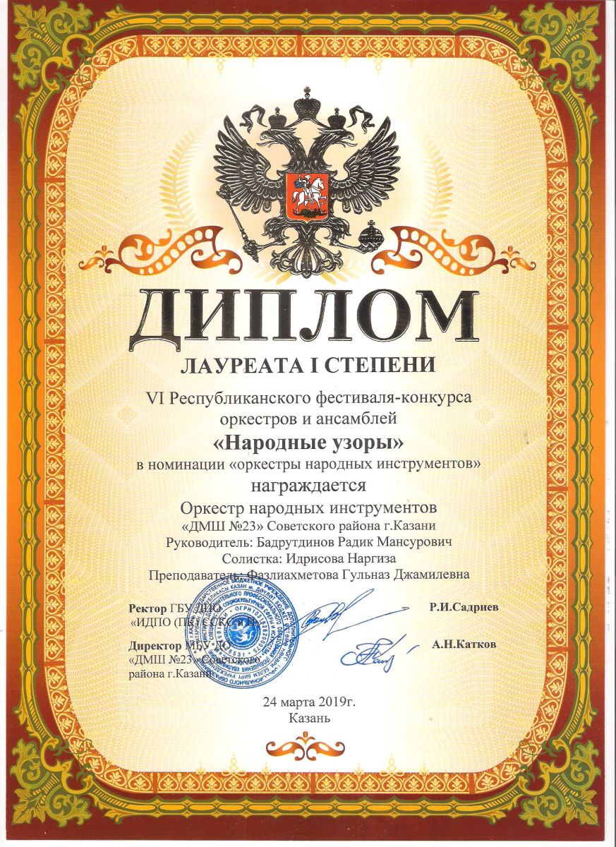 Республиканский смотр художественного творчества - Диплом за 1 место - Антонова Диана