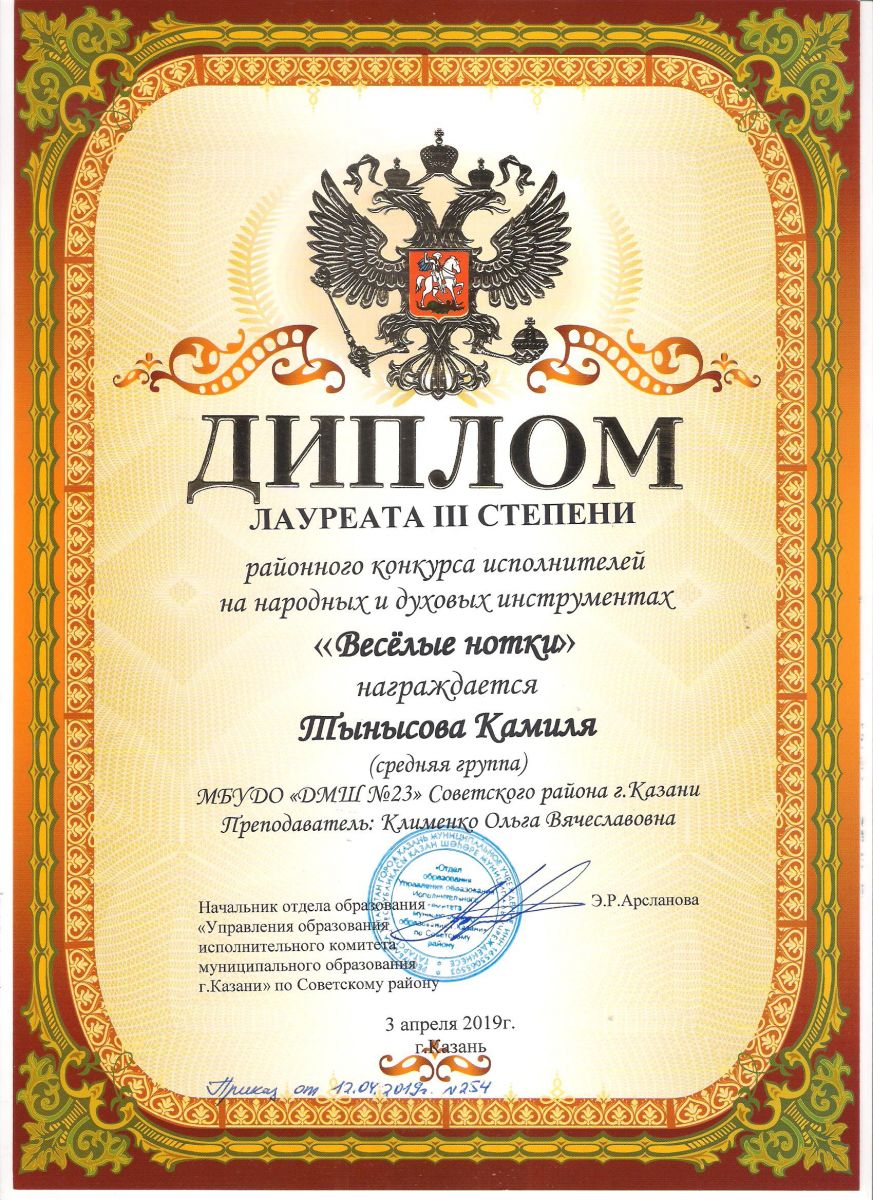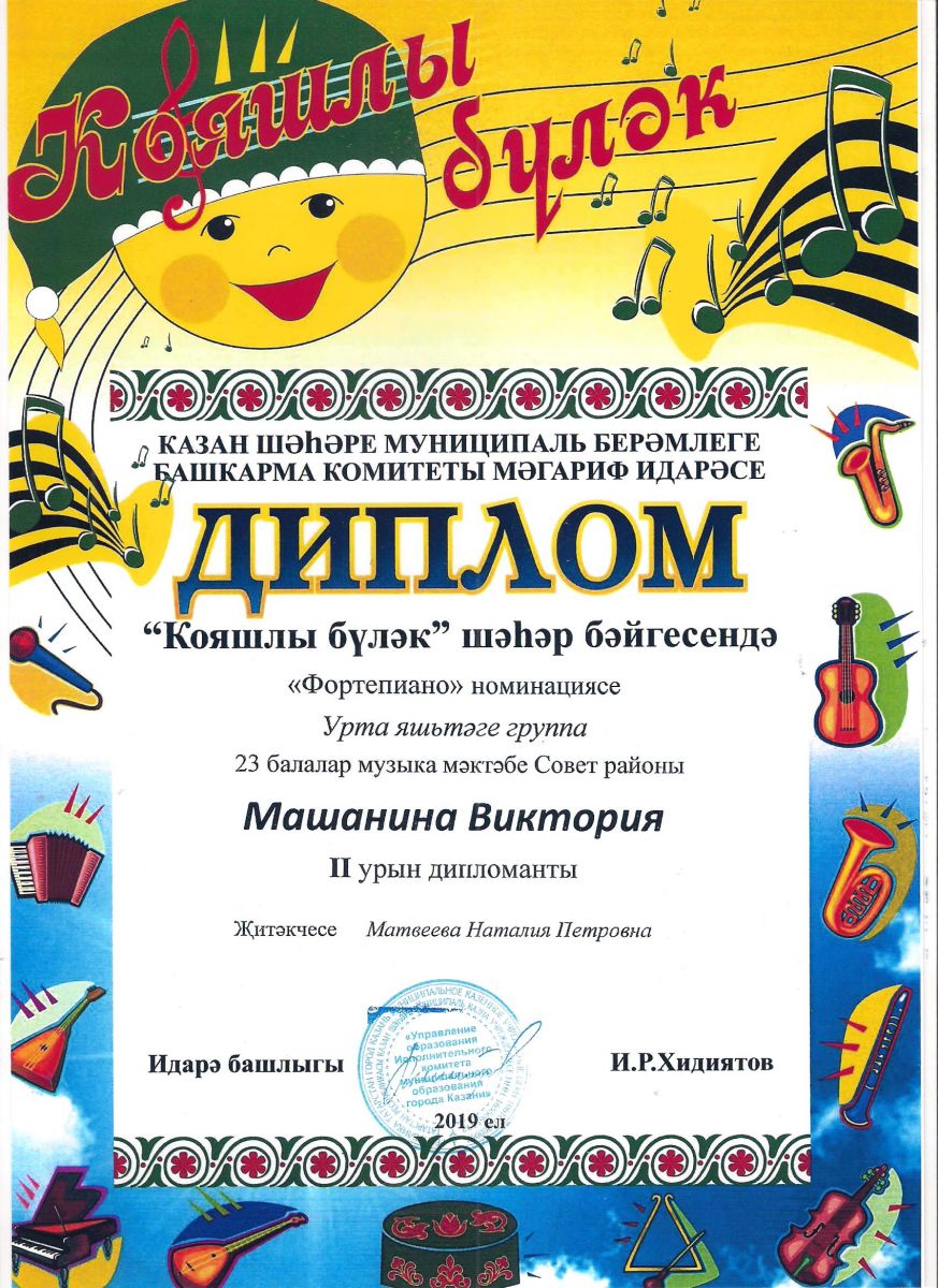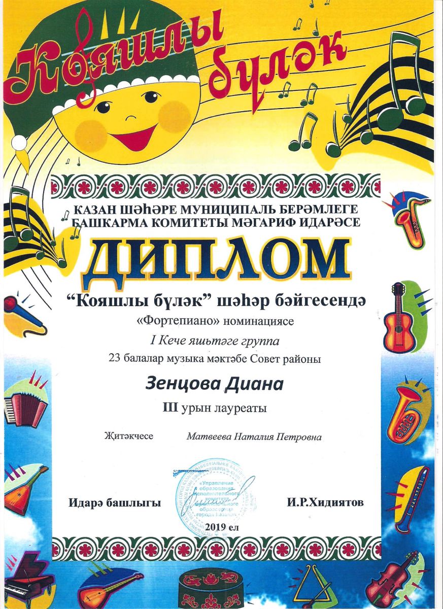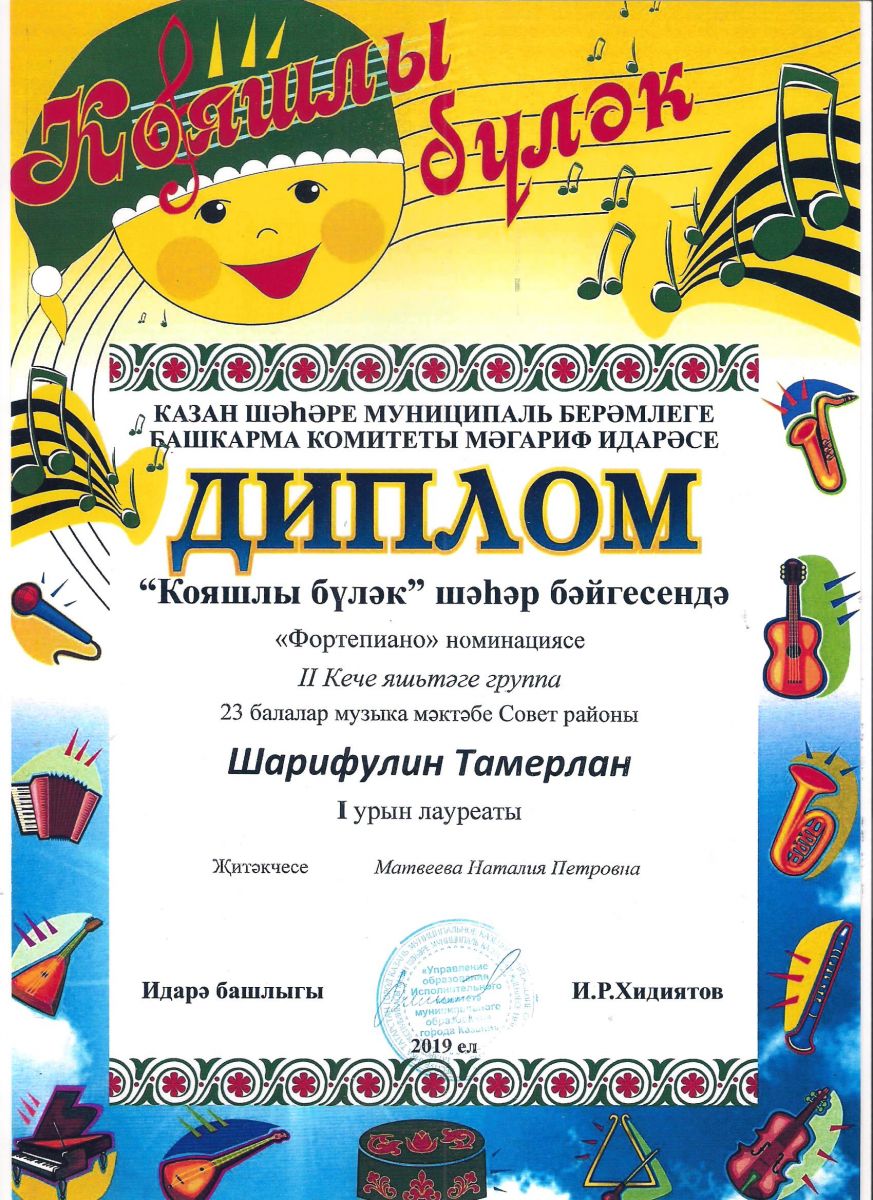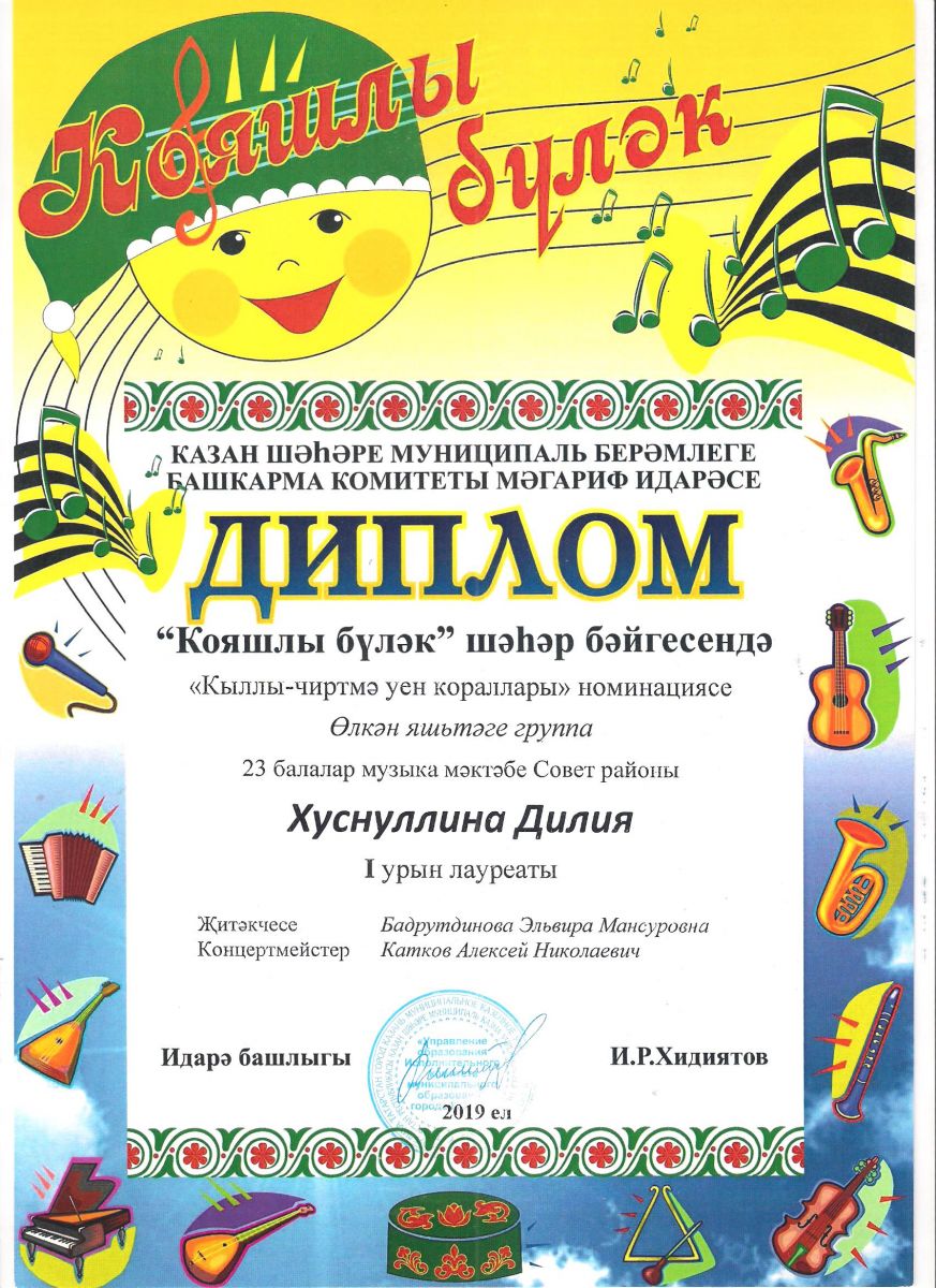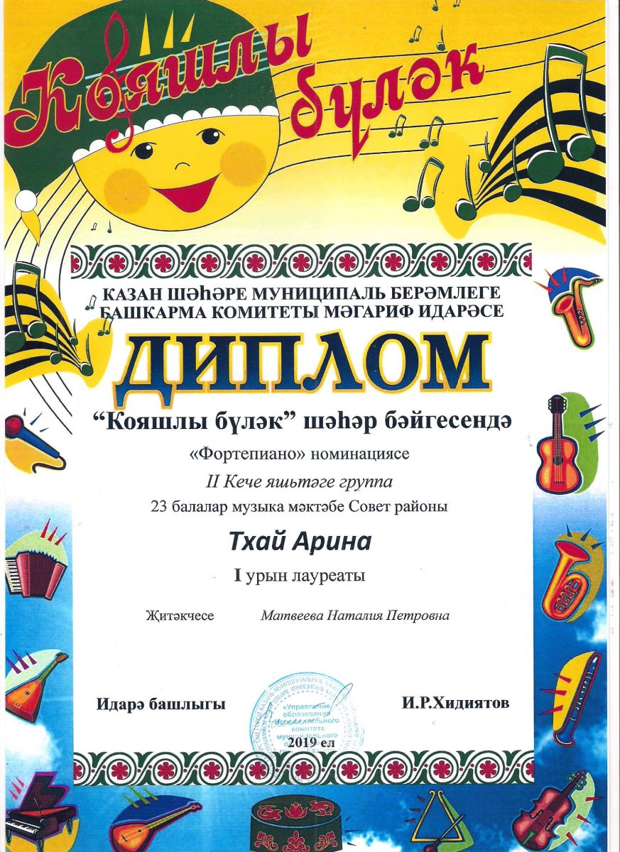 Городской конкурс татарской музыки «Кояшлы бүләк - 2019» - Диплом лауреата I степени - Тхай Арина